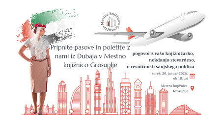 Kino v Grosupljem - vabljeni na februarsko projekcijo!15.01.2026V občini Grosuplje po novem enkrat mesečno potekajo tudi kino projekcije, namenjene vsem generacijam. V februarju v Kulturnem domu Grosuplje: Četrtek, 19. februar 2026, ob 11.00 - ELVIS ŠKORC, slovenski družinski film Četrtek, 19. februar 2026, ob17.00 - KAJ TI JE DEKLICA, slovenski kandidat za oskarja za mednarodni film Vstopnice so na voljo: v Kulturnem domu Grosuplje: https://kultura.si/vstopnice/ na mojekarte.si na Petrolovih servisih po Sloveniji. Cena vstopnice je 5 €. Sedežni red ne velja. Vabljeni v kino, kjer bomo skupaj uživali v filmskih zgodbah na velikem platnu! -