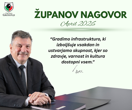 ŽUPANOV NAGOVOR, april 202620.04.2026Spoštovani občanke in občani! Lepo se je popeljati skozi Račno, urejena je kanalizacija, urejena je javna razsvetljava, državna cesta proti Mlačevem dobiva svojo končno podobo v upanju, da bodo dvoživke resnično varno prečkale cesto, saj v ta namen je evropski proračun prispeval kar nekaj sredstev. Tudi čez Predole do Spodnje Slivnice je položen asfalt, lahko rečemo, da se je stanje glede odvajanja odpadnih vod spet izboljšalo. Sedaj se dela izgradnje kanalizacijskega omrežja nadaljujejo na Mlačevem, kar bo stanje na Radenskem polju spet dodatno izboljšalo. Z deli na izgradnji kanalizacijskega omrežja okoli Radenskega polja bomo nadaljevali, dokler vsa naselja ne bodo opremljena s priključki na javno kanalizacijo ne glede na to, ali nam bo pri tem pomagal državni proračun ali pa se bomo morali opreti na lastna sredstva. Velik uspeh pa je tudi nadzidava Z -