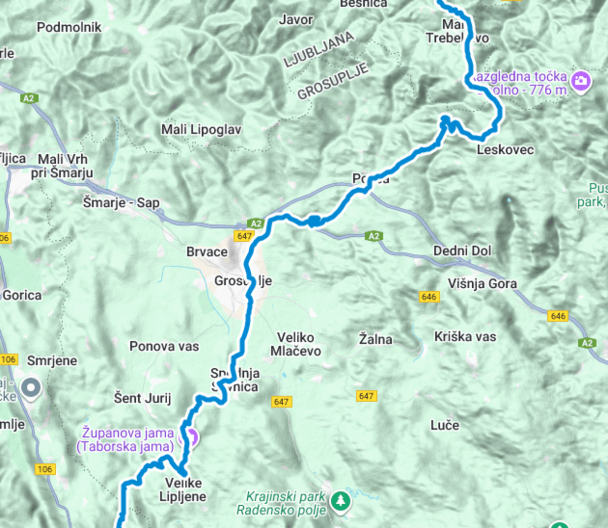 Zberemo se ob 9. uri pred Knjižnico Grosuplje (Adamičeva cesta 15, 1290 Grosuplje), kjer je tudi žig E6.