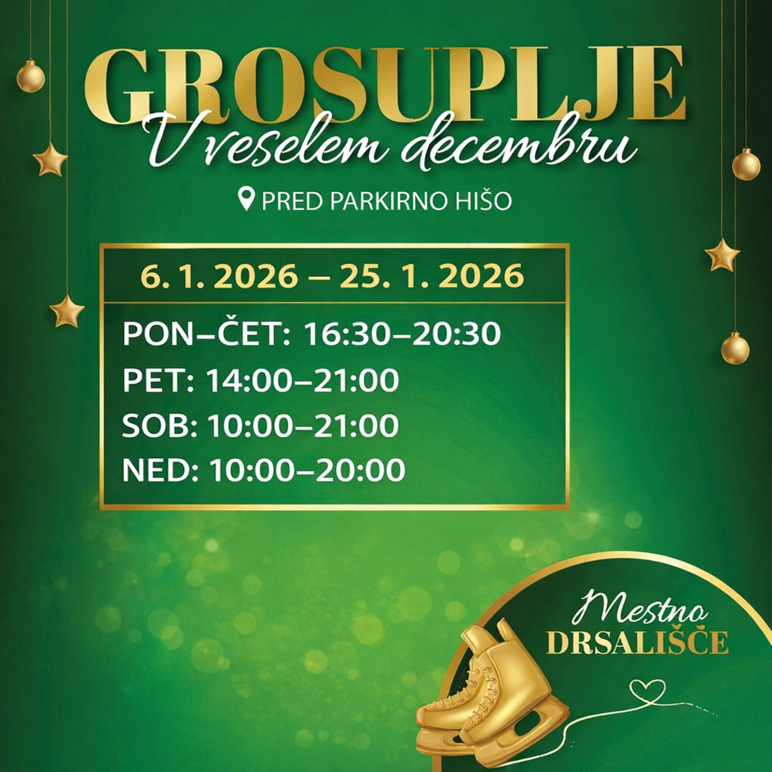 S prižigom lučk bo zaživelo tudi Mestno drsališče Grosuplje, ki ga bo otvorila čarobna drsalna predstava kluba Labod Bled.