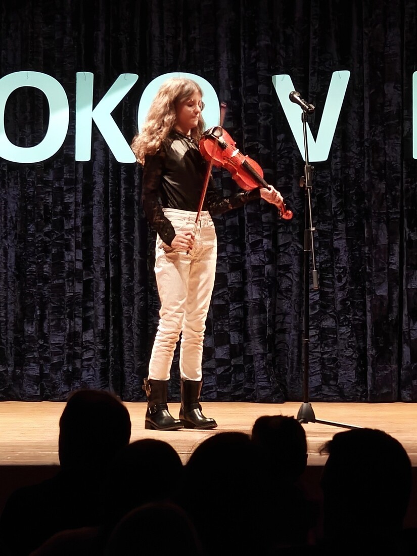 Naša zlata violinistka Lucija Ana Dragaš nam je zaigrala klasično Perlmanovo skladbo: Israeli concertino 3. stavek fantasie - recitative pod mentorskim očesom Eve Pal, nato pa še v lastni režiji Marijino pesem: Lepa si, lepa si, roža Marija. Posebna zahvala Lucijini mentorici Evi Pal za vso strokovno podporo, pa tudi Lucijinim staršem za vse spodbude. Vsem želimo zdravja, veselja in navdihujoče ustvarjalnosti tudi v letu 2026.