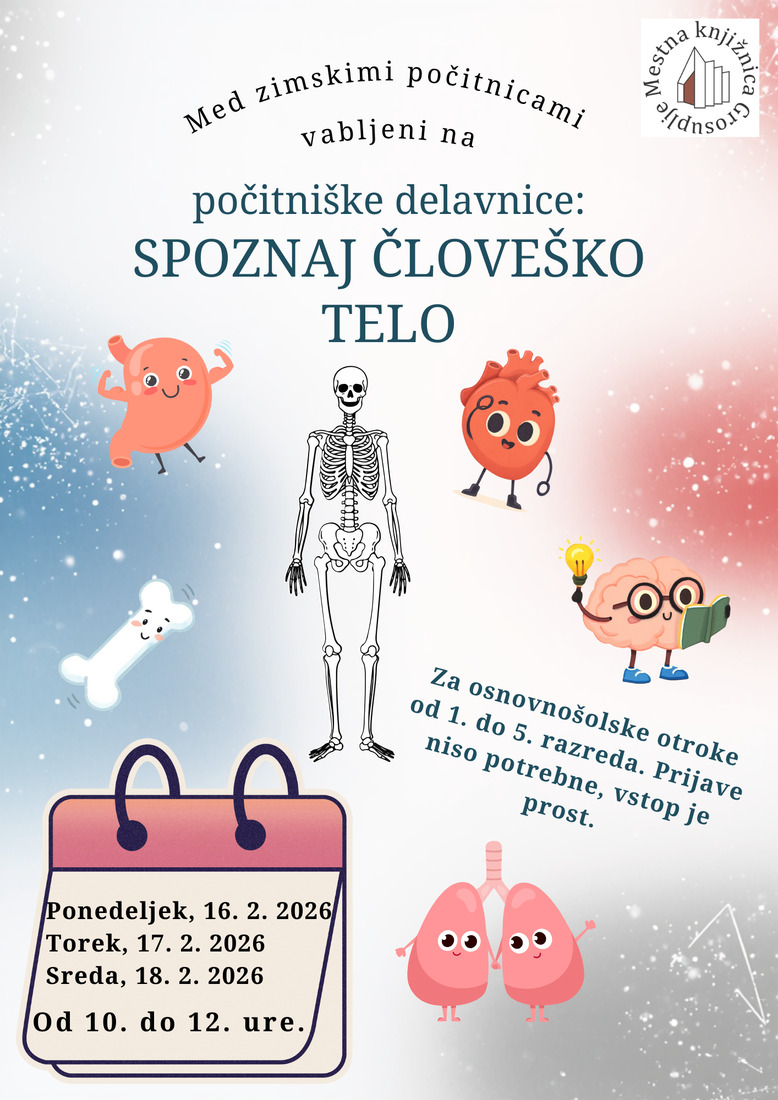 Med zimskimi počitnicami vabimo osnovnošolske otroke od 1. do 5. razreda na počitniške delavnice: Spoznaj človeško telo.