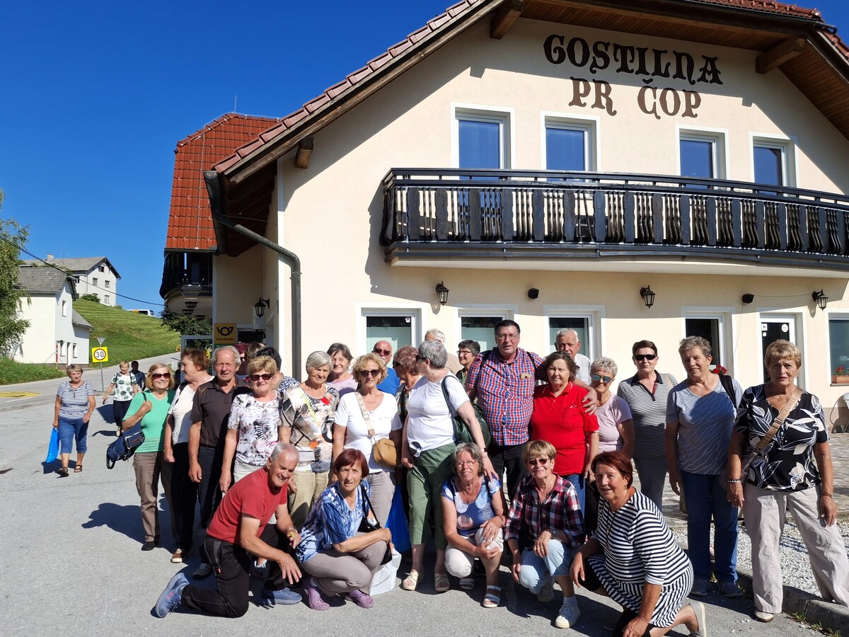 - Sredi meseca pa na izlet V tri krasne. V rudarske revirje. V Čečah nad Hrastnikom so nam v skeču prikazali nekdanje rudarsko življenje in to z zelo sočno govorico. Postregli so nam tudi z rudarsko malico, to sta bila funštrc in cikorja kafe. V Trbovljah smo si ogledali 360 metrov visok dimnik opuščene termoelektrarne. Najvišja zgradba v Sloveniji in najvišji dimnik v Evropi. Do sedaj ga je menda preplezalo enajst korenjakov, med njimi seveda tudi Janja Garnbret. Izlet pa vedno zaključimo s kosilom. Tokrat smo bili v Podkumu, pri zelo znanem kuharju Lojzetu Čopu.