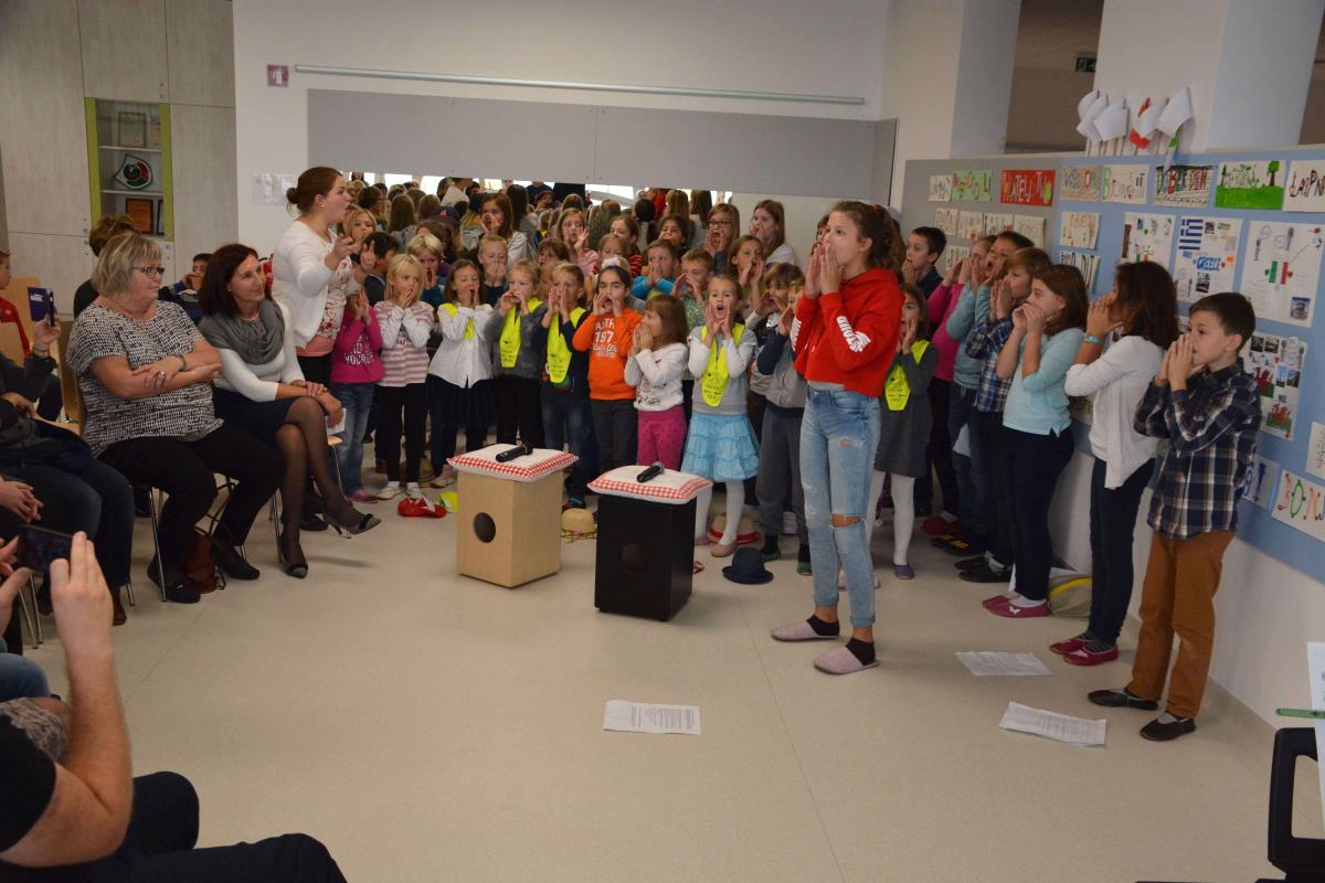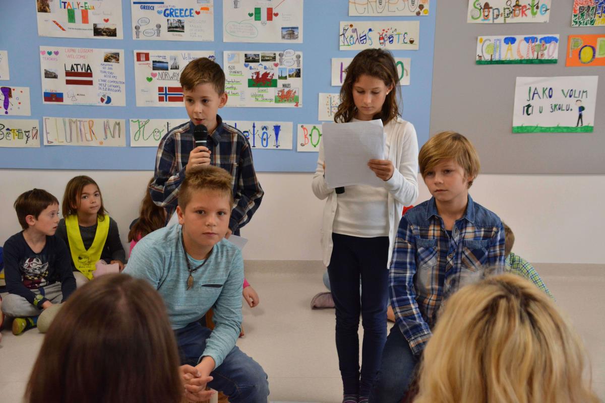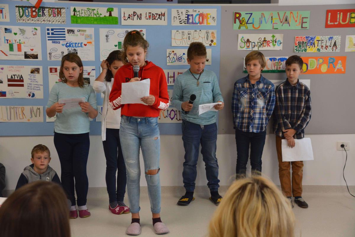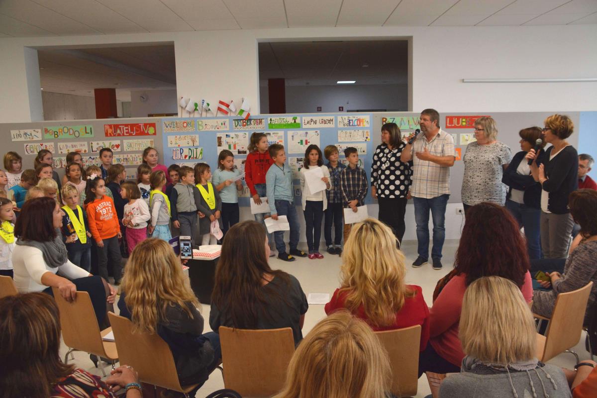 »Mi smo učenci Podružnične osnovne šole Polica. Na šoli nas je skoraj 100. Šolo obiskujejo učenci sedmih različnih narodnosti. Letos smo pri projektu z naslovom »Ko se razumemo, je življenje lepše« spoznavali materine jezike naših sošolcev. Srečanje z drugačnostjo nas ne ogroža, ampak bogati naše življenje in delo. Radi se družimo, ustvarjamo, pomagamo drug drugemu in se skupaj učimo,« so se uvodoma predstavili učenci šole in jim zaupali, da so srečni, ker imajo čudovito novo šolo.