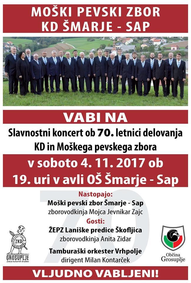 KONCERT MOŠKEGA PEVSKEGA ZBORA ŠMARJE - SAP OB 70. LETNICI DELOVANJA