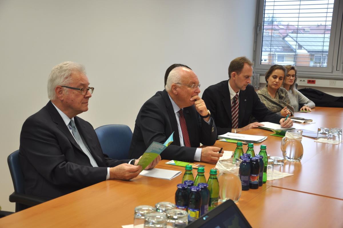 Predsednik Inštituta regij Evrope dr. Franz Schausberger je s sodelavci dr. Joachimom Fritzem, dr. Berndom Petrischem, Liso-Marie Stauffer, Merimo Abdic in Martino Balazic našo občino obiskal v sredo, 8. novembra 2017. V prostorih MRC-ja občin Grosuplje, Ivančna Gorica in Trebnje sta ga poleg našega župana dr. Petra Verliča in direktorja občinske uprave mag. Dušana Hočevarja sprejela tudi podžupan občine Ivančna Gorica Tomaž Smole in direktor občinske uprave občine Trebnje mag. Janez Pirc, srečanju pa je prisostvovala tudi vodja MRC-ja občin Grosuplje, Ivančna Gorica in Trebnje Jasmina Selan s sodelavcem Petrom Zakrajškom.