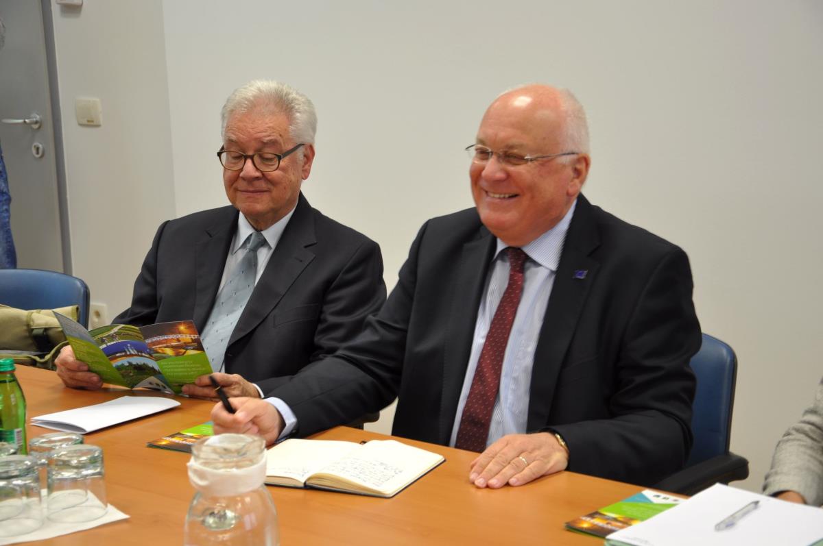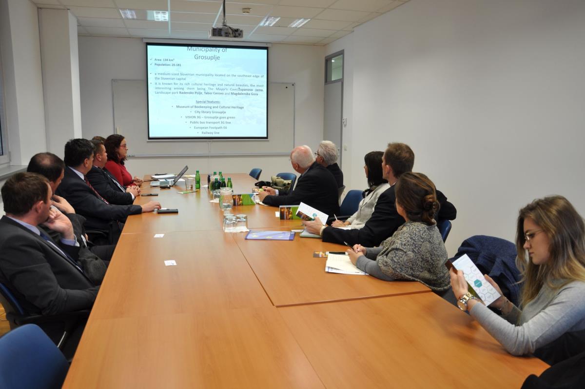 V začetku letošnjega sta nas obiskala Marco Boaria, vodja oddelka za razvoj in Aldo Xhani, koordinator programov evropskega državljanstva iz združenja ALDA, na naše povabilo pa se je tokrat odzval tudi predsednik Inštituta regij Evrope dr. Franz Schausberger, s katerim sta se župan dr. Peter Verlič in direktor občinske uprave mag. Dušan Hočevar srečala že na 13. konferenci Evropskih regij in mest, ki je potekala konec septembra v Salzburgu.