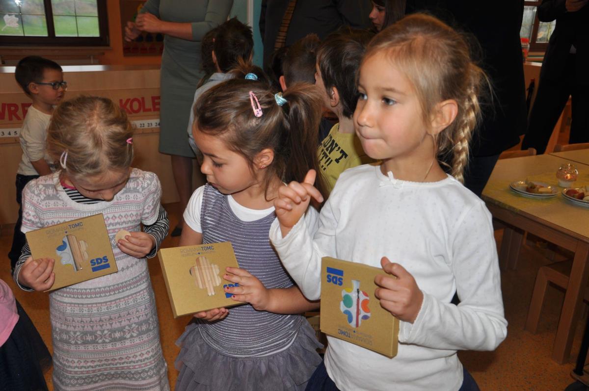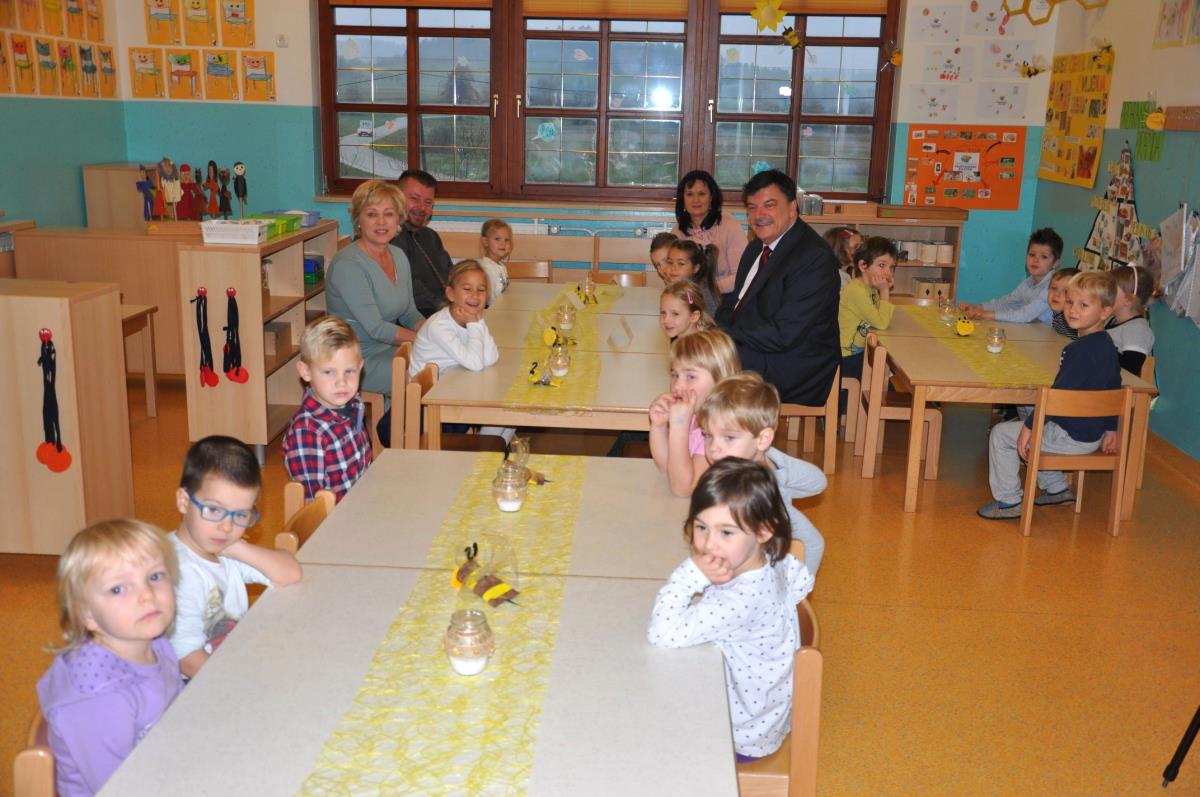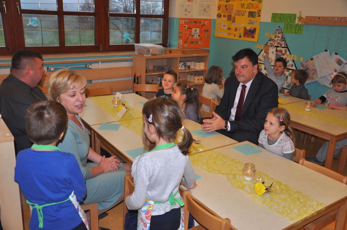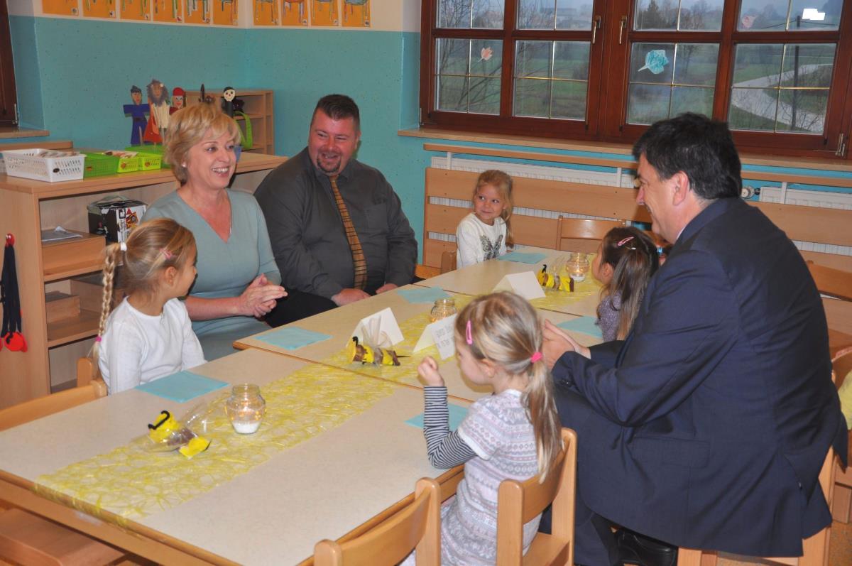Otrokom v vrtcu Jurček so se na tradicionalnem slovenskem zajtrku pridružili župan dr. Peter Verlič, direktor občinske uprave mag. Dušan Hočevar in evropska poslanka Romana Tomc