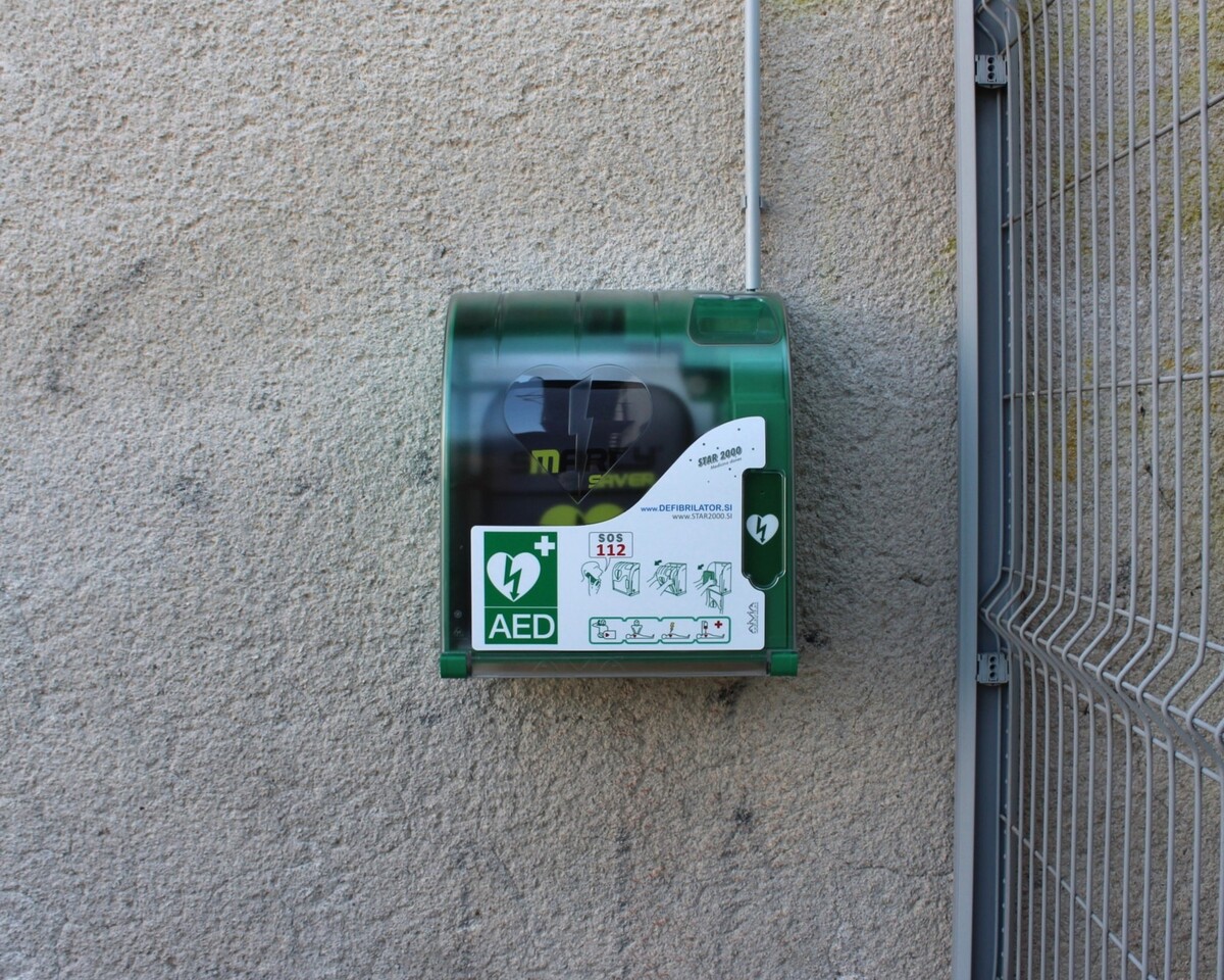 Dobrodelno Društvo za srčno žilne bolezni AED, ki se ukvarja s postavitvijo brezplačnih defibrilatorjev po celi Sloveniji, je podarilo nov defibrilator tudi naši skupnosti, z željo, da bo tudi naša skupnost še varnejša za občanke in občane ter tudi obiskovalce naše občine.