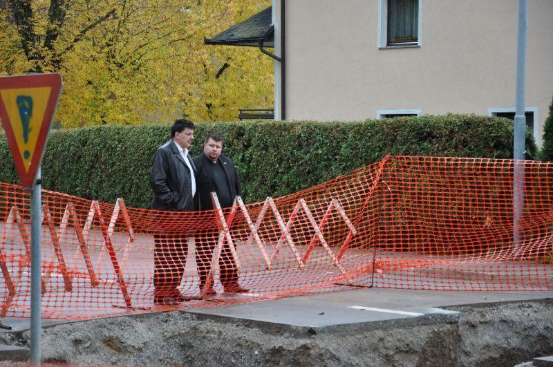 Župan dr. Peter Verlič in podžupan Dušan Hočevar sta si ogledala, kako napreduje rekonstrukcija toplovoda na Bevkovi cesti v Grosupljem.