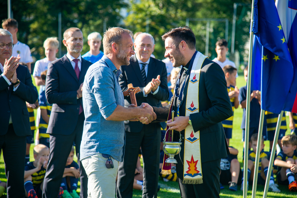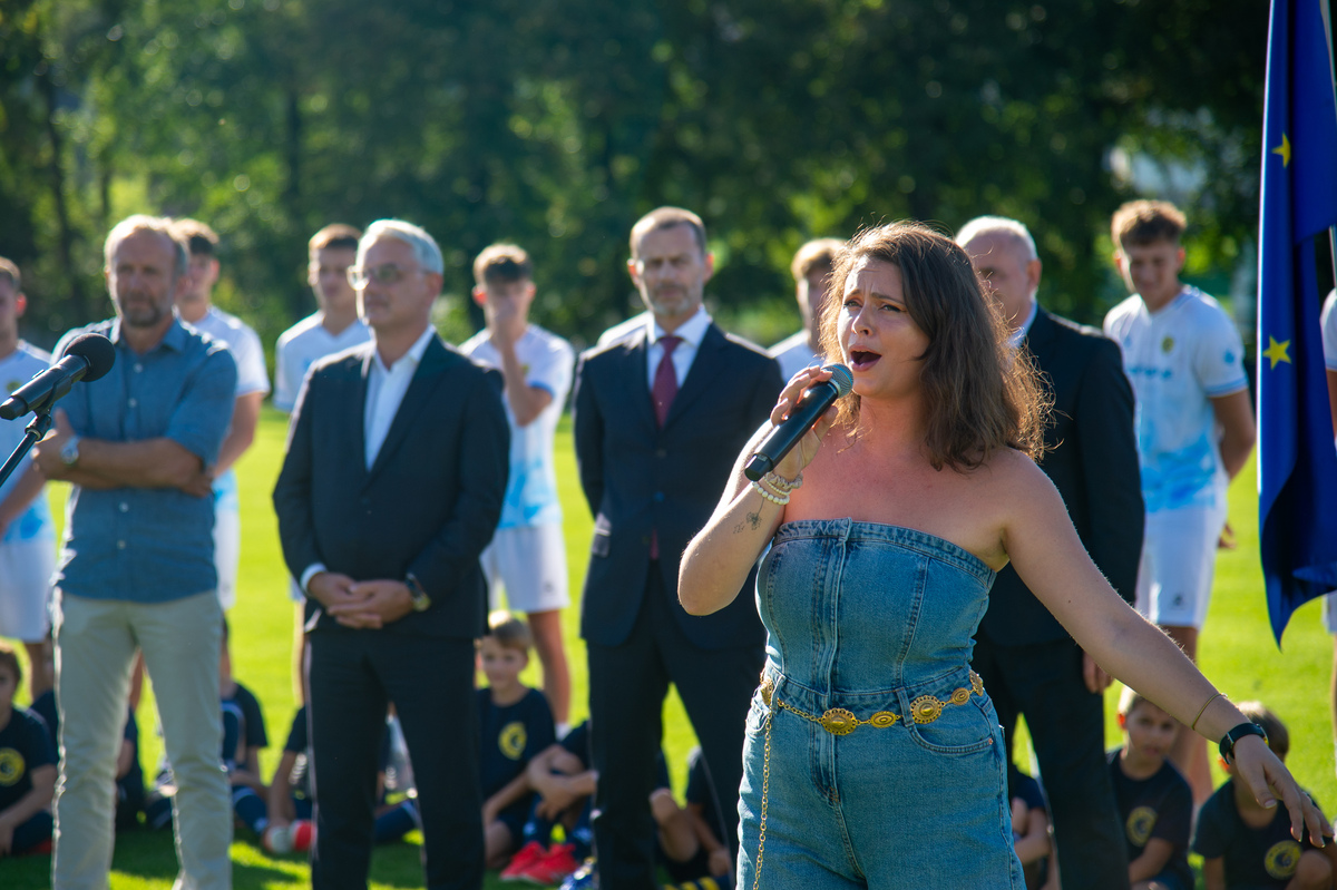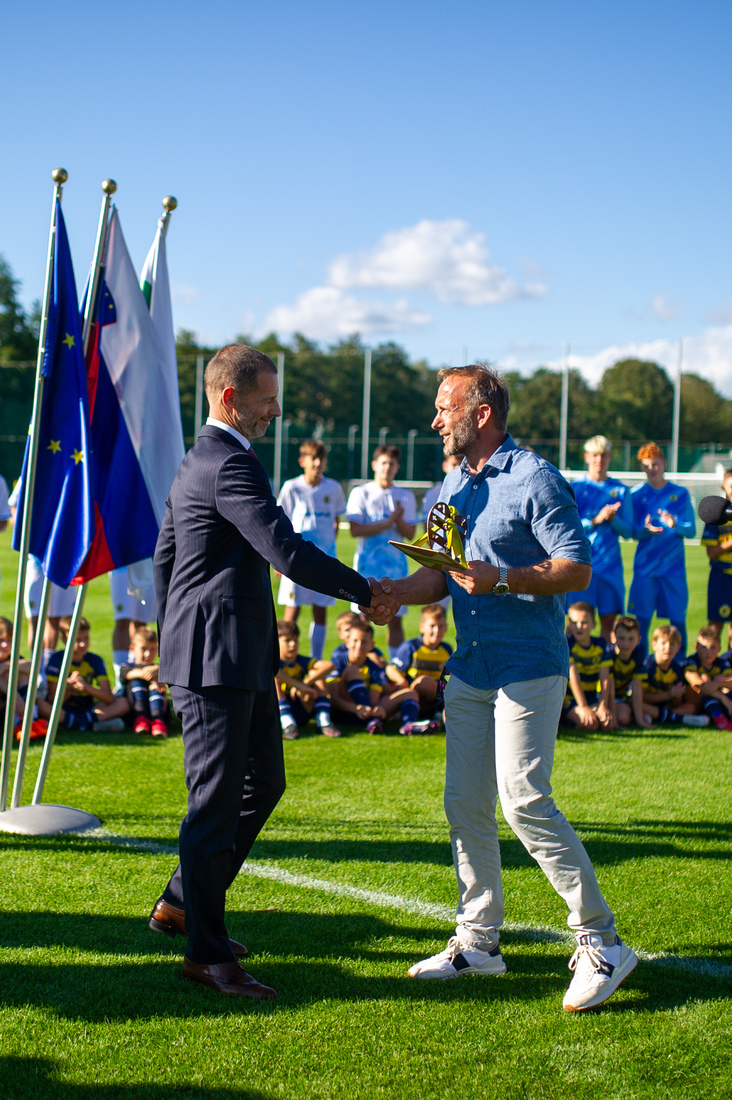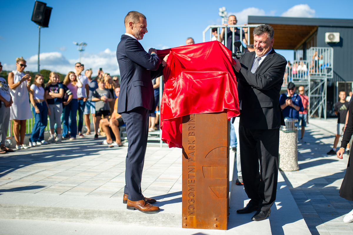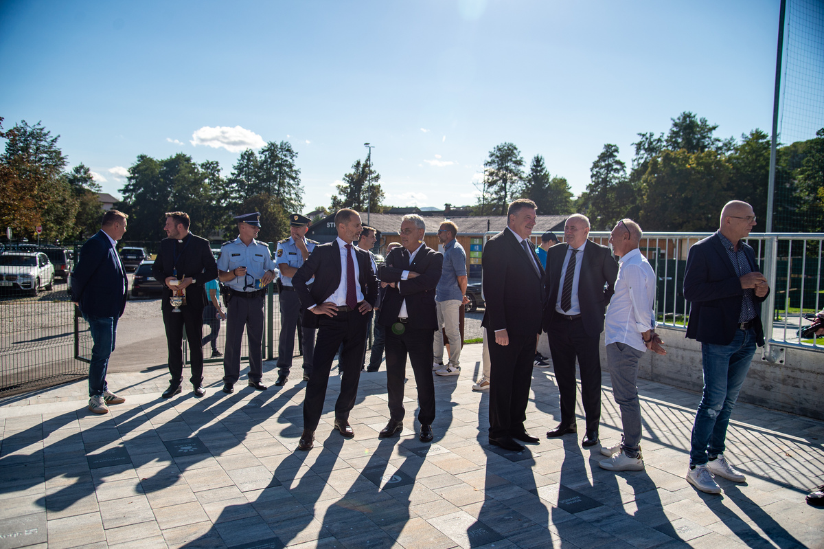 Pričetek slovesnosti sta naznanili slovenska in evropska himna ter slavnostno odkritje spominske plošče ob srcu na novi ploščadi ob zelenici v Nogometnem parku Brinje. Spominsko ploščo sta odkrila predsednik Evropske nogometne zveze Aleksander Čeferin in župan Občine Grosuplje dr. Peter Verlič.