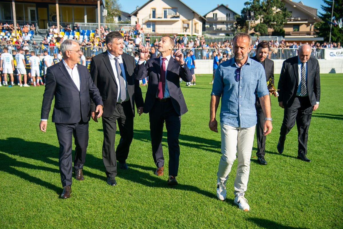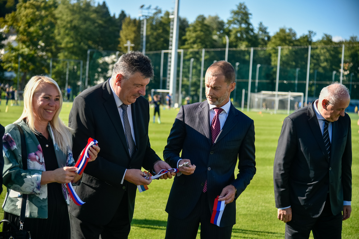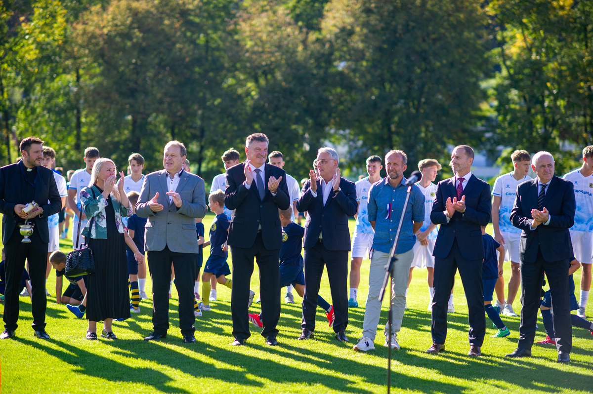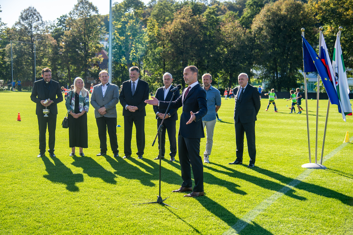 »V veliko čast in veselje mi je, da lahko odprem ta prečudovit park skupaj z vsemi vami,« je zbrane na slovesnem dogodku nagovoril predsednik Evropske nogometne zveze Aleksander Čeferin. »V časih, ko so naši otroci preveč za računalniki, preveč zaprti v sobah, je športna infrastruktura še kako pomembna,« je dejal. Vedeti pa moramo tudi, da ni naključje, da je takšen nogometni park zrasel ravno v Grosupljem. »Zato, ker Občina Grosuplje na čelu z županom dr. Petrom Verličem ogromno vlaga v infrastrukturo in zato vsa čast in globok poklon.« Dejal je, da je tudi minister Matjaž Han dosegel, da se v Sloveniji sedaj mnogo več investira v šport, kot se je investiralo prej. »Šport pomeni mnogo več, kot samo šport. Šport pomeni, da so mladi bolj zdravi, da jih je manj v kriminalu in več na igrišču,« je poudaril. Dejal pa je tudi, da pa je davčna politika, ki pa je na področju finančnega ministrstva, ena najbolj neugodnih v Evropi ravno v Sloveniji. »In na tem področju bi morala Slovenija narediti več.«