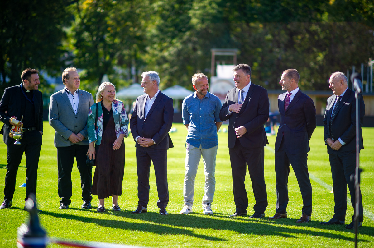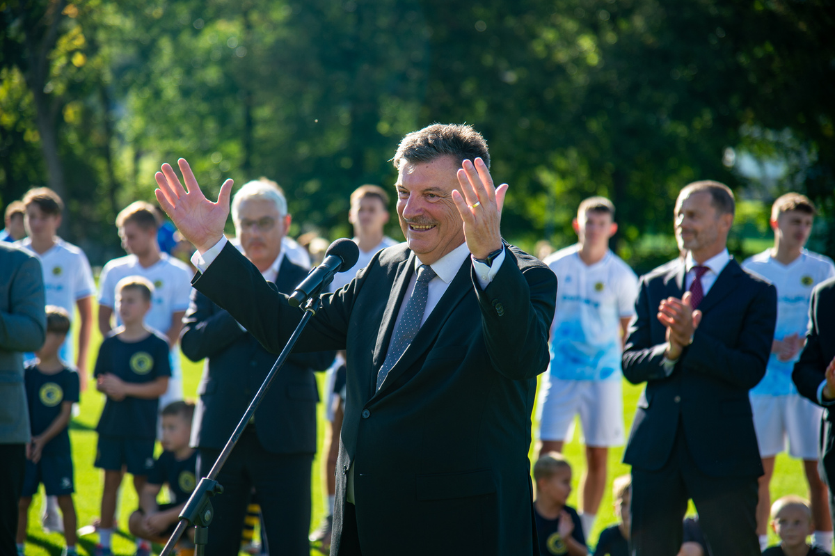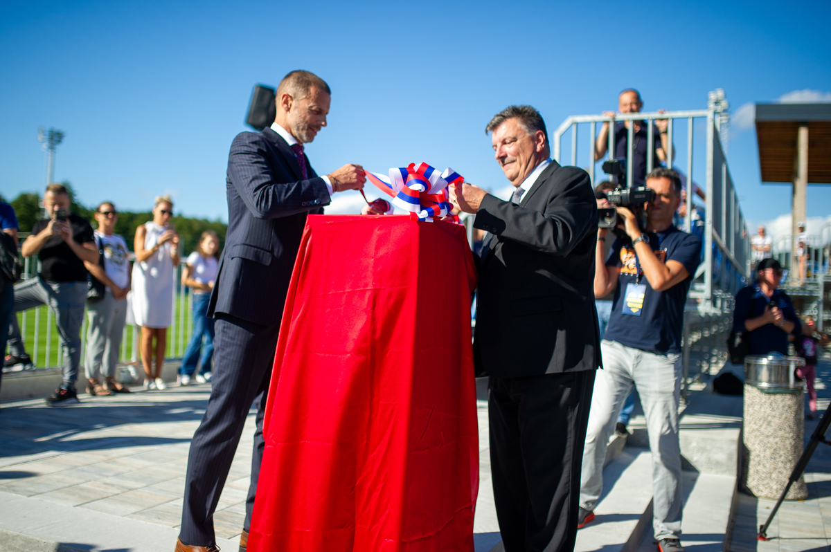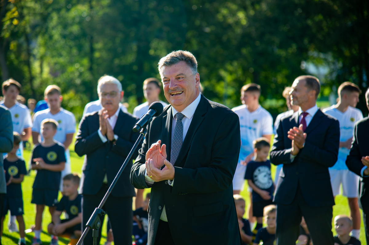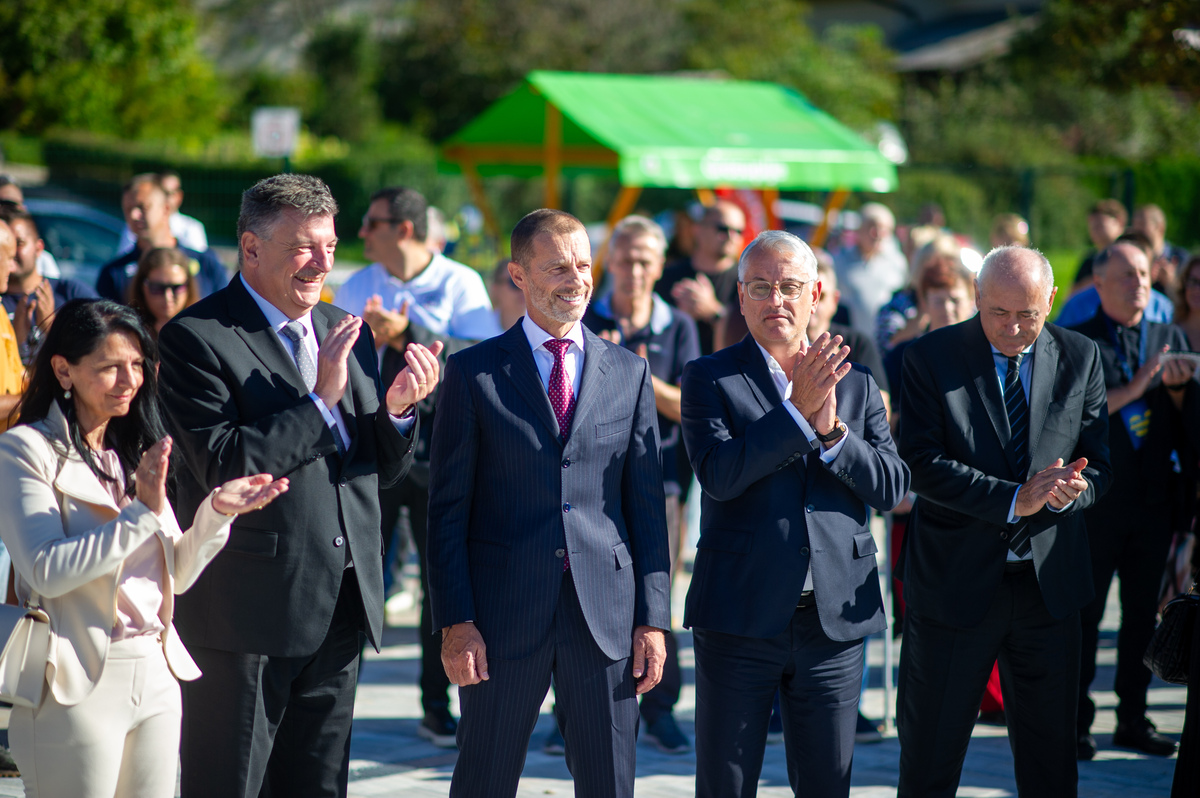 »V veliko čast in veselje mi je, da lahko odprem ta prečudovit park skupaj z vsemi vami,« je zbrane na slovesnem dogodku nagovoril predsednik Evropske nogometne zveze Aleksander Čeferin. »V časih, ko so naši otroci preveč za računalniki, preveč zaprti v sobah, je športna infrastruktura še kako pomembna,« je dejal. Vedeti pa moramo tudi, da ni naključje, da je takšen nogometni park zrasel ravno v Grosupljem. »Zato, ker Občina Grosuplje na čelu z županom dr. Petrom Verličem ogromno vlaga v infrastrukturo in zato vsa čast in globok poklon.« Dejal je, da je tudi minister Matjaž Han dosegel, da se v Sloveniji sedaj mnogo več investira v šport, kot se je investiralo prej. »Šport pomeni mnogo več, kot samo šport. Šport pomeni, da so mladi bolj zdravi, da jih je manj v kriminalu in več na igrišču,« je poudaril. Dejal pa je tudi, da pa je davčna politika, ki pa je na področju finančnega ministrstva, ena najbolj neugodnih v Evropi ravno v Sloveniji. »In na tem področju bi morala Slovenija narediti več.«