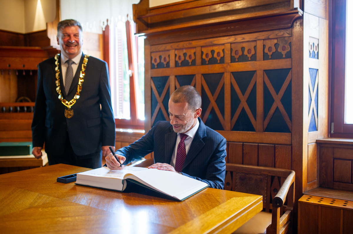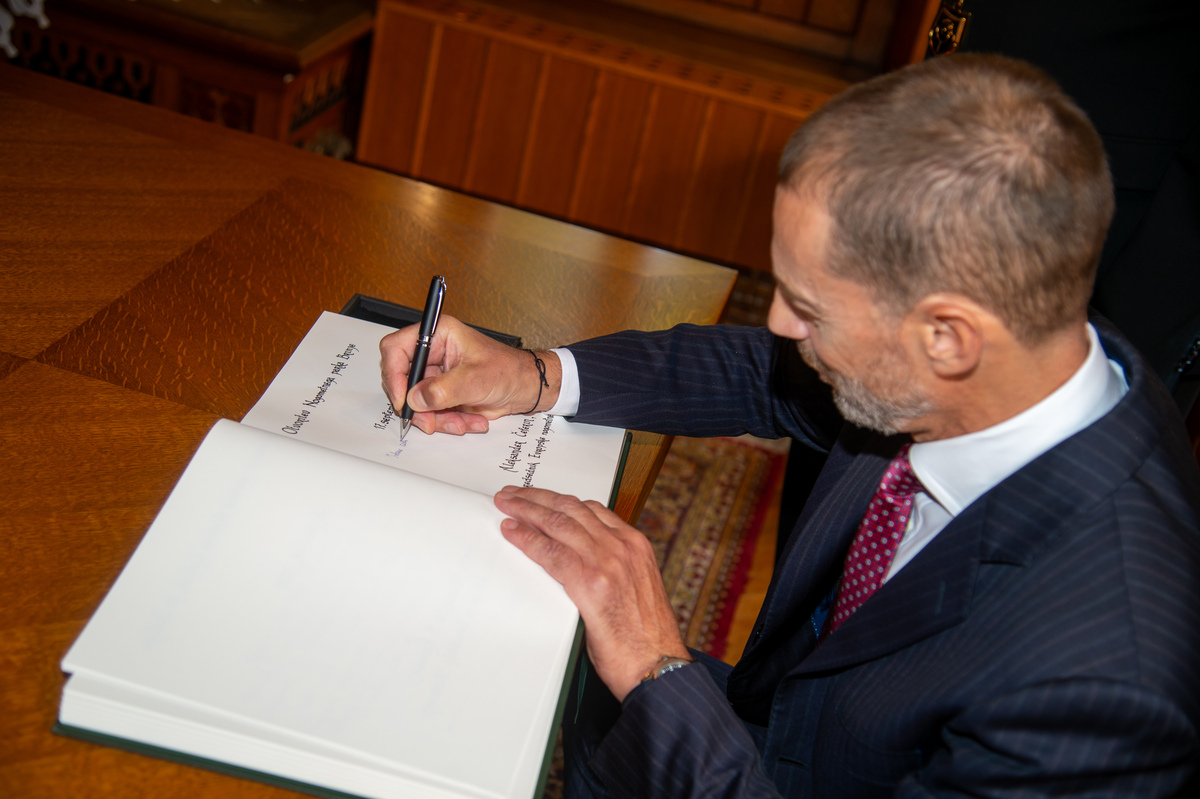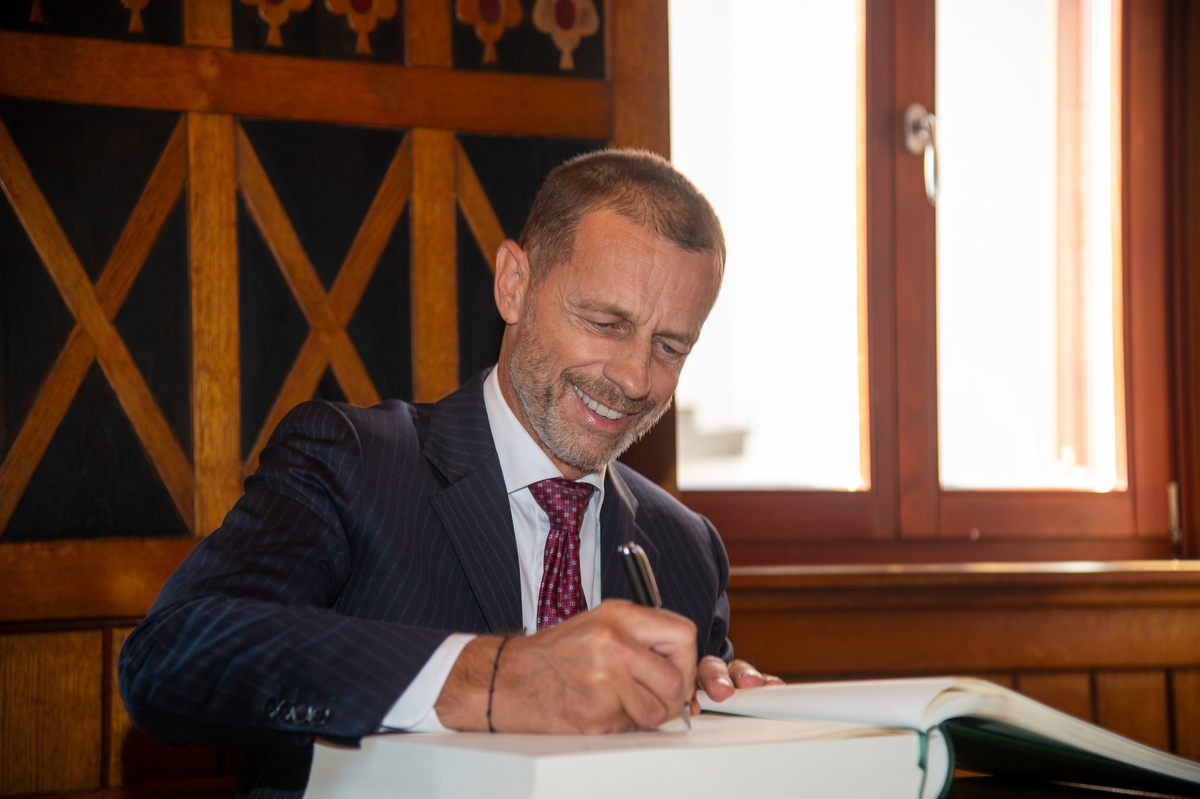 Predsednik Uefe Aleksander Čeferin je v spominski knjigi ob svojem podpisu zapisal: