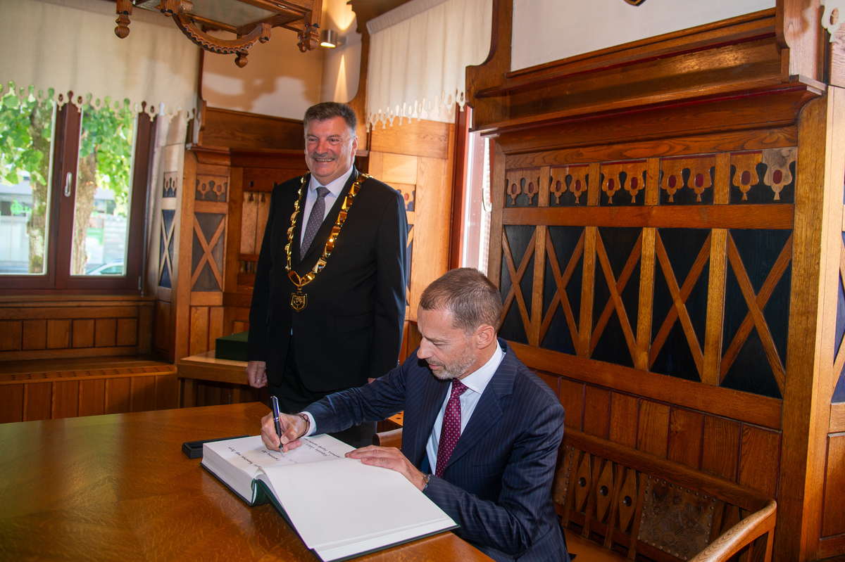 V SPOMINSKO KNJIGO OBČINE GROSUPLJE SE JE VPISAL TUDI PREDSEDNIK UEFE ALEKSANDER ČEFERIN