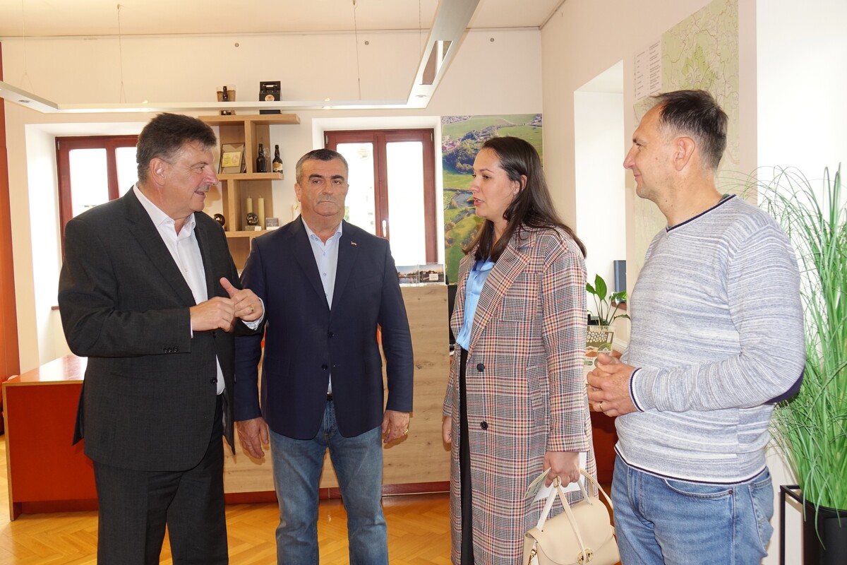 Danes je našo občino obiskal župan Občine Vlasenica iz Bosne in Hercegovine, Miroslav Kraljević, v spremstvu sodelavca Željka Damljanovića, vodje oddelka za razvoj. Delegacijo so sestavljali tudi Dalibor Vidović, ravnatelj Osnovne šole »Vuk Karadžić«, Tatjana Savić, direktorica Predšolske ustanove »Prvi koraci«, ter Svjetlana Lazić, ravnateljica Srednješolskega centra »Milorad Vlačić«. V prostorih občinske hiše sta jih sprejela župan dr. Peter Verlič in podžupan Janez Pintar.