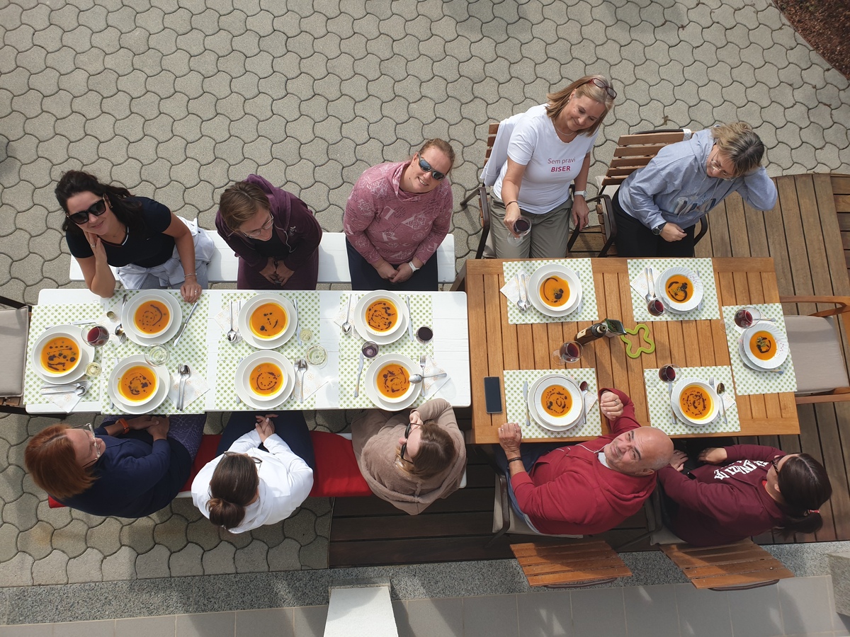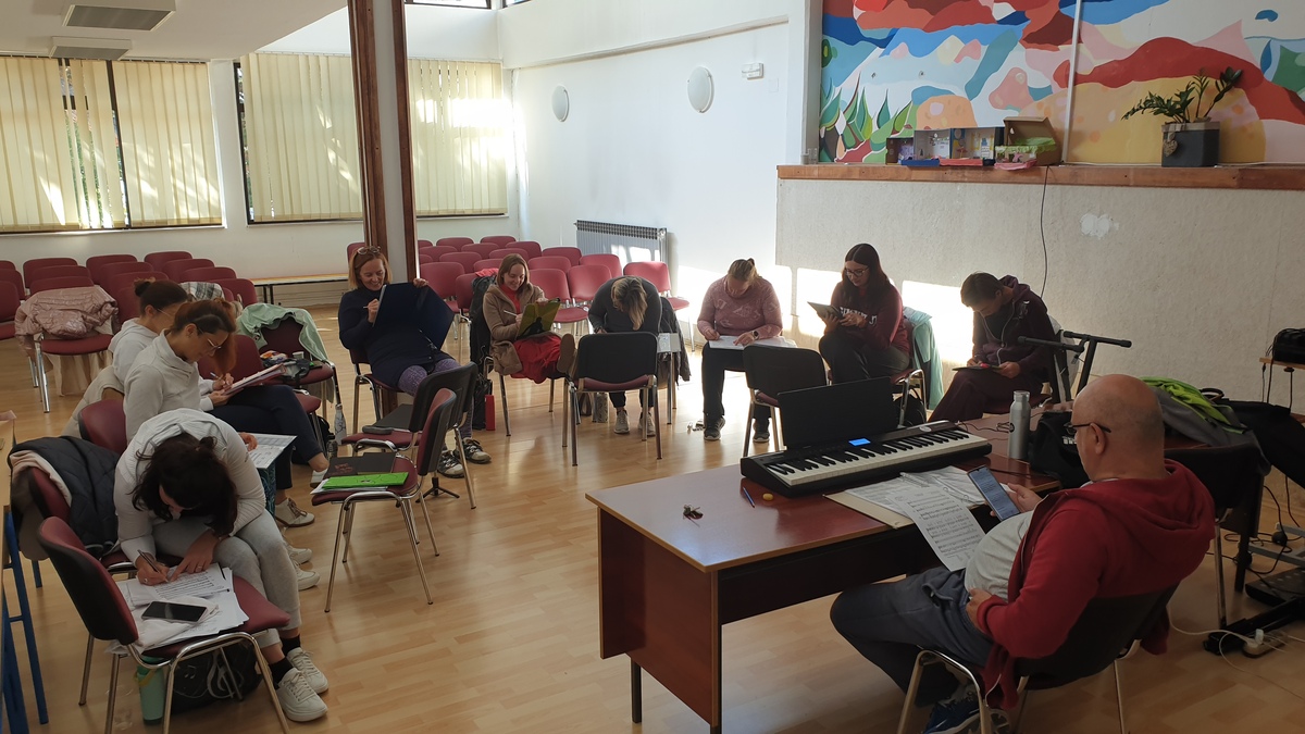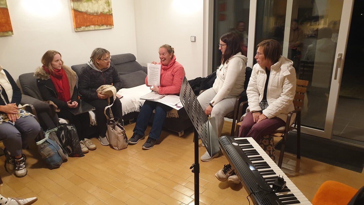 In kdo bi pozabil okuse gurmanskih specialitet naše drage Marjane, ki nas je razvajala, da smo se lahko osredinile na glasbeno duhovne priložnosti. Morda je kdo že ugotovil, kje bi nas našel, da je to ponovno Crikvenica. Maestro Fernando se ni ustrašil rahlo okrnjene zasedbe, z zaupanjem nas je mojstrsko peljal skozi vikend, da bi nas dovršeno upel v koncertnih melodijah O Salutaris Hostia, Močnikovega Angelčka in nekaj črnskih spiritualov. Oranžni alarm je svaril pred orkansko burjo z nalivom, a upam si trditi, da je naše petje med mašo in na koncertu po njej obiskovalcem cerkve sv. Antona Padovanskega umirilo in pobožalo srce. Prikladno se je spojilo z mislimi fra Vita, ki je med pridigo pomenljivo govoril o zaupanju v današnjem svetu. Po dogodku je v prostorih pavlinskega samostana še dolgo vladala četrta dimenzija, ta, ko se čas ustavi in je med nami lepo. Tam nekje ob čudovitem čaju in mandarinah iz samostanskega vrta so se ujeli obeti prihodnosti. Lepo je načrtovati, ko je energija takšna, ko je sprejetost, podpora, bližina in volja.