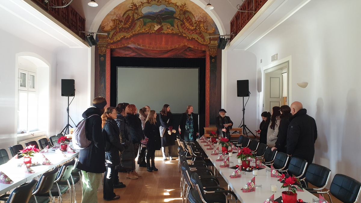 A začnimo na začetku. Za Ženski pevski zbor Biser se je dan začel s panoramsko vožnjo skozi Ljubelj, ki nam je že ob prihodu pričarala čudovite razglede na zasnežene vrhove in idilično pokrajino Koroške. Pot nas je vodila mimo zimsko odetih vasic in gozdov, ki so ustvarjali pravo pravljično kuliso. V Borovljah smo bili toplo sprejeti s strani gospoda Franca, ki nam je ob pijači dobrodošlice zaupal številna zanimiva dejstva o Koroški in življenju njenih prebivalcev. Ste vedeli, da je Borovlje (nemško Ferlach) še danes znano po svoji orožarski obrti?