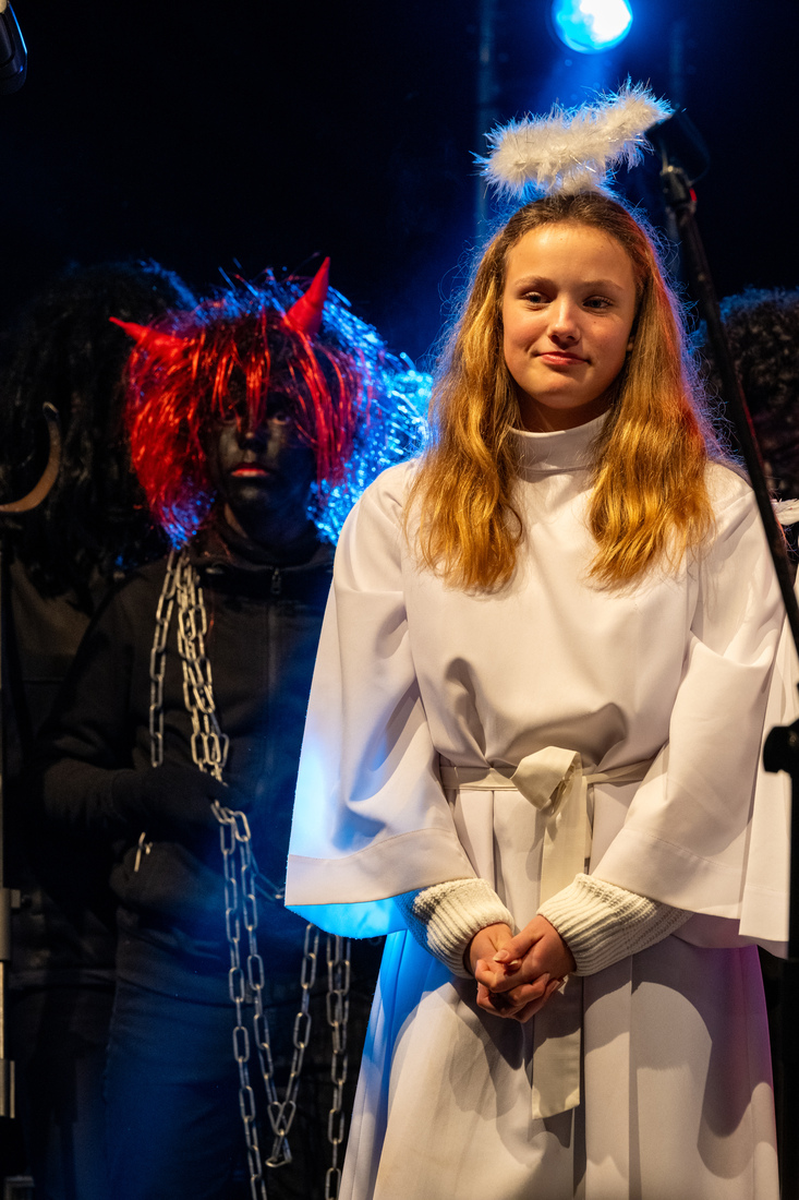 Pevci Osnovne šole Brinje so nam pod vodstvom zborovodje Emila Kovačca v uvodu zapeli pesmi Tih večer in Biseri. Po nagovoru župana, dr. Petra Verliča, so otroci skupaj z županom prižgali praznične luči in poskrbeli za še dodaten lesk v očeh. Sledil je trenutek, ki so ga najmlajši že težko pričakovali. Ob taktih Mihaelove godbe je na praznični oder prišel sveti Miklavž z angelčki in z darilci razveselil najmlajše obiskovalce. Gospod župnik, Martin Golob, je blagoslovil drsališče, da bodo vse male nogice v prazničnih dneh drsale mirno in varno.