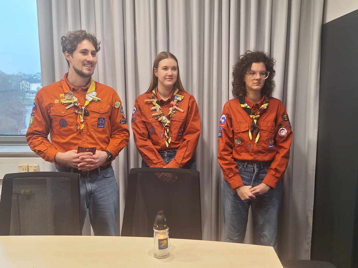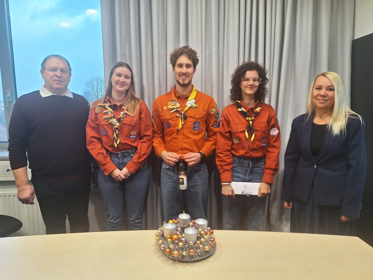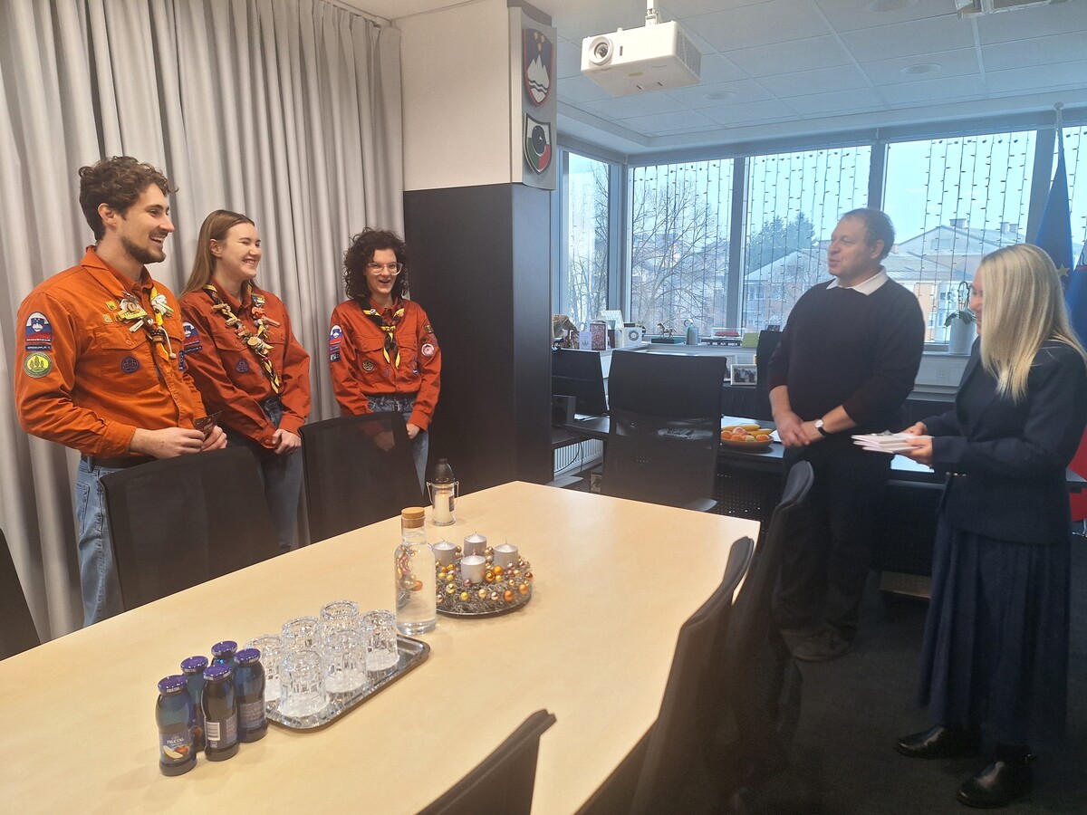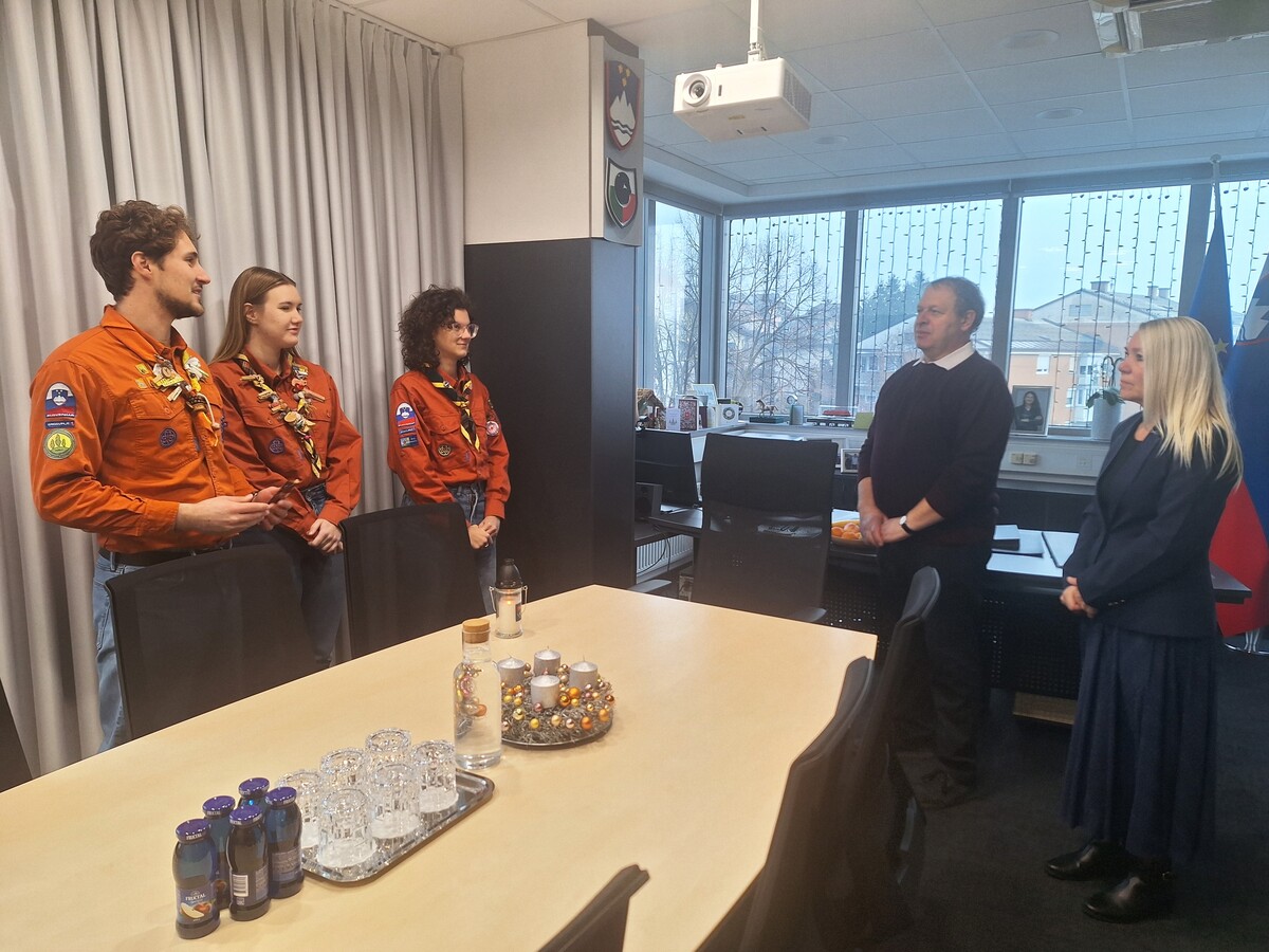 Grosupeljski in šmarski skavti so danes Luč miru iz Betlehema prinesli tudi v prostore naše občinske hiše, kjer sta jih sprejela podžupan Janez Pintar in direktorica Zdenka Grozde.