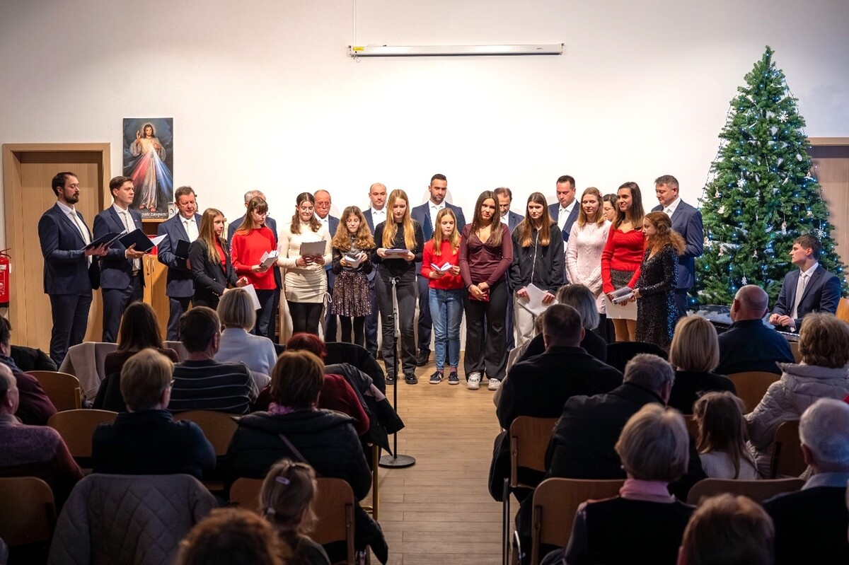 Triintrideseto leto prepevanja zbora pod vodstvom Draga Zakrajška vstopa v novo poglavje z mladim zborovodjo Maticem Garbasom. Njegovo znanje in zavzetost ter izkušnje Draga in pevcev so nas popeljali skozi štiri sklope pesmi, ki so slavili rojstvo Odrešenika in rojstvo naše države. Prav kot Bog, mali Bog - božič, ki je bil tako dolgo pričakovan, tako tudi samostojnost Slovenije, ki ji je 26. december 1990. leta z razglasitvijo rezultatov plebiscita o samostojnosti dal krila, da se je po leta kasneje rodila naša država. 35. obletnico tega dogodka so pevci polepšali s slovensko himno na začetku in skozi koncert s pesmimi kot so Slovenec sem, Slovenska dežela in znamenito Hajdrihovo Jadransko morje – prav s pesmijo, ki bo v letu 2026 praznovala 150. obletnico nastanka. Sklop božičnih napevov – od Rajskih strun do Hitite, kristjani in drugih, so dopolnili z gosti Otroškim in mladinskim pevskim zborom svetega Lovrenca pod vodstvom Sare Omahen, ki so z mladostno energijo slavili rojstvo Boga in praznovanje božiča. Skupaj s pevci je Sveto noč zapela cela dvorana.