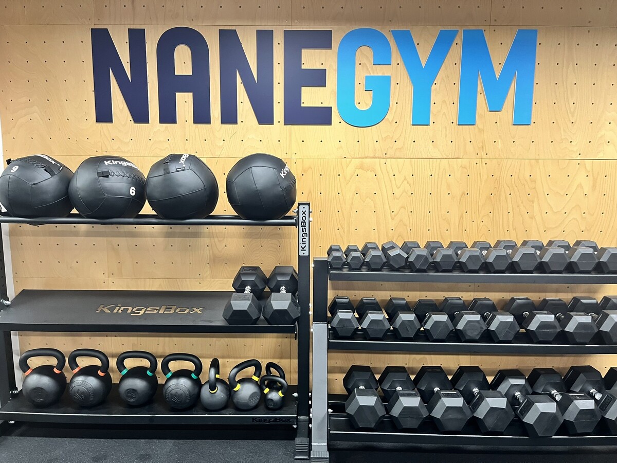 Prostor smo v spomin na Franca Vidmarja - Naneta (1963-2023), ki je bil dolga leta pobudnik razvoja pogojev na področju športa v Občini Grosuplje, poosebljal pa je tudi red, natančnost in predanost športu, poimenovali NANEGYM. Prostor smo s pomočjo grafičnega oblikovalca Vasje Ambrožiča opremili s posebej oblikovanim logotipom in posebno zahvalo v spomin na skupni projekt Občine Grosuplje in športnih društev.