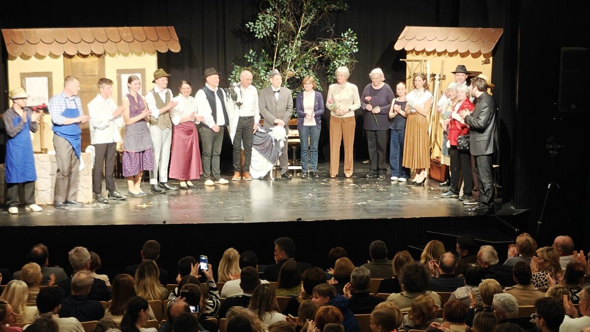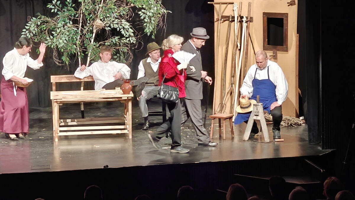Premiera gledališke predstave Gosposka kmetija, ki je bila v nedeljo, 15. marca, v Kulturnem domu Grosuplje, je navdušila do zadnjega kotička napolnjeno dvorano in potrdila, da domače gledališče živi in diha s svojo publiko.