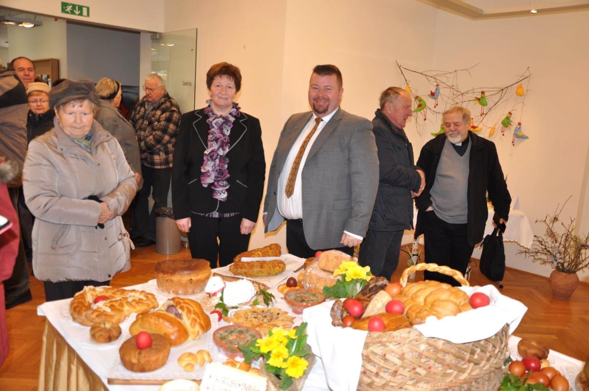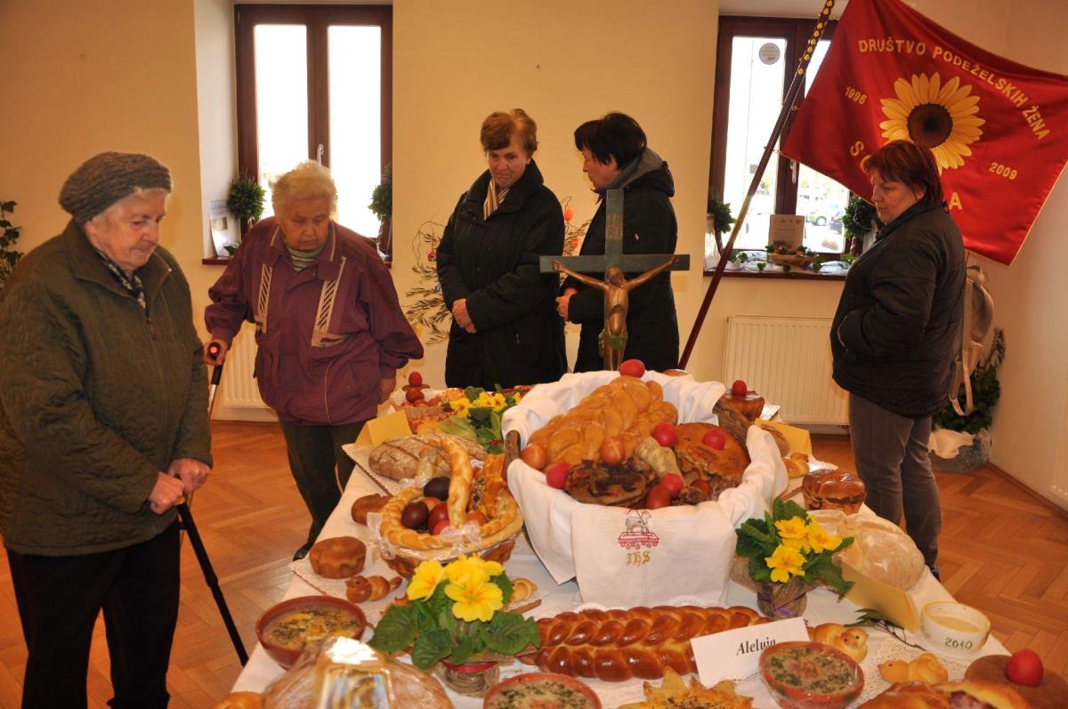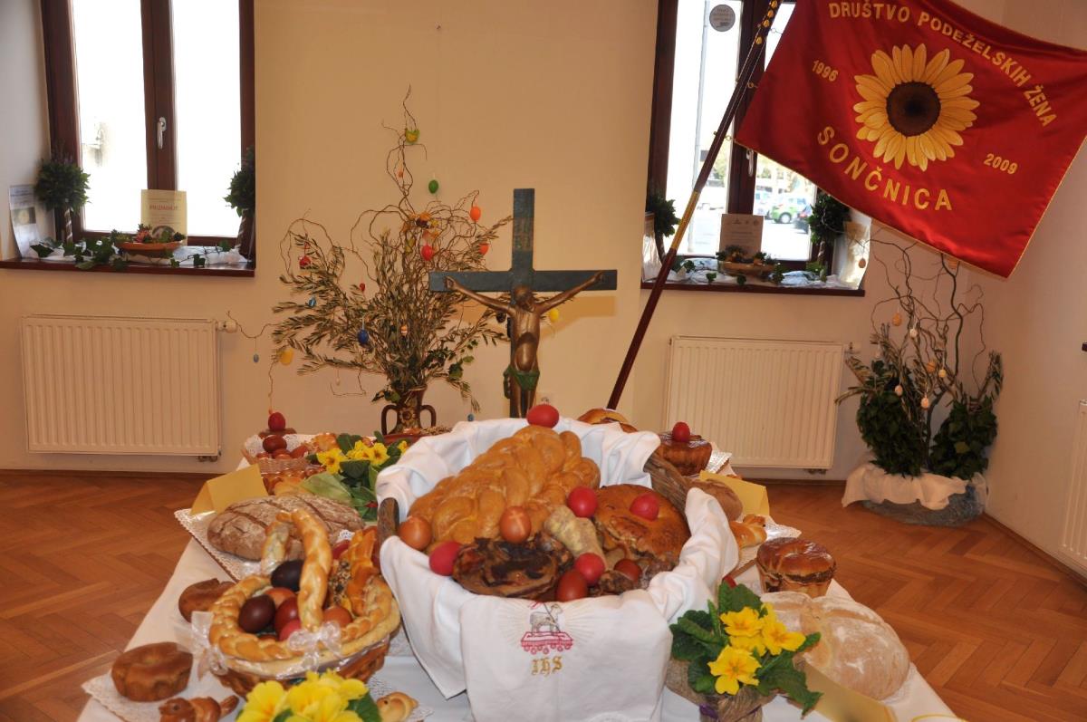 Ob odprtju razstave je zbrane obiskovalce, posebej direktorja občinske uprave mag. Dušana Hočevarja, v.d. direktorja Zavoda za turizem in promocijo »Turizem Grosuplje« Uroša Permeta, direktorico Mestne knjižnice Grosuplje Rožo Kek in ravnateljico VVZ Kekec Grosuplje Majdo Fajdiga, lepo pozdravila predsednica Društva podeželskih žena Sončnica Tatjana Novljan in ob tej priložnosti nekaj besed namenila velikonočnemu času. Pred nami je cvetna nedelja, ko blagoslavljamo oljčne vejice ali butarice, nato pa stopimo v veliki teden. Na veliki petek je strogi post, na veliko soboto blagoslovimo velikonočna jedila, ki jih zaužijemo v nedeljo po vstajenjski procesiji. Velikonočne jedi predstavljajo simbol Jezusovega trpljenja, sama velika noč pa je praznik veselja in upanja.