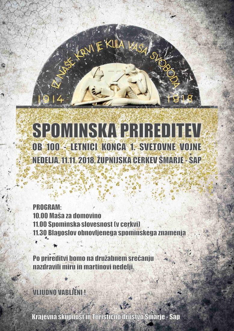 Svečanost ob otvoritvi prenovljenega spominskega znamenja padlim vojakom v I. sv. vojni in 100 letnici konca 1. svetovne vojne