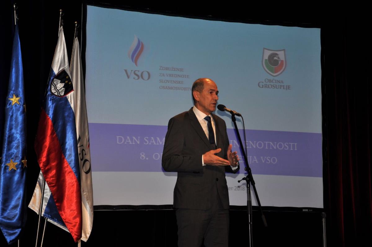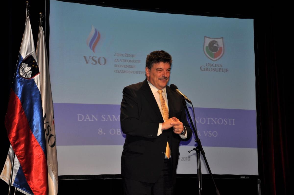 Ob tej priložnosti so nas nagovorili generalni sekretar Združenja VSO dr. Božo Predalič, župan občine Grosuplje dr. Peter Verlič ter poslanec Državnega zbora in eden ključnih slovenskih osamosvojiteljev Janez Janša.
