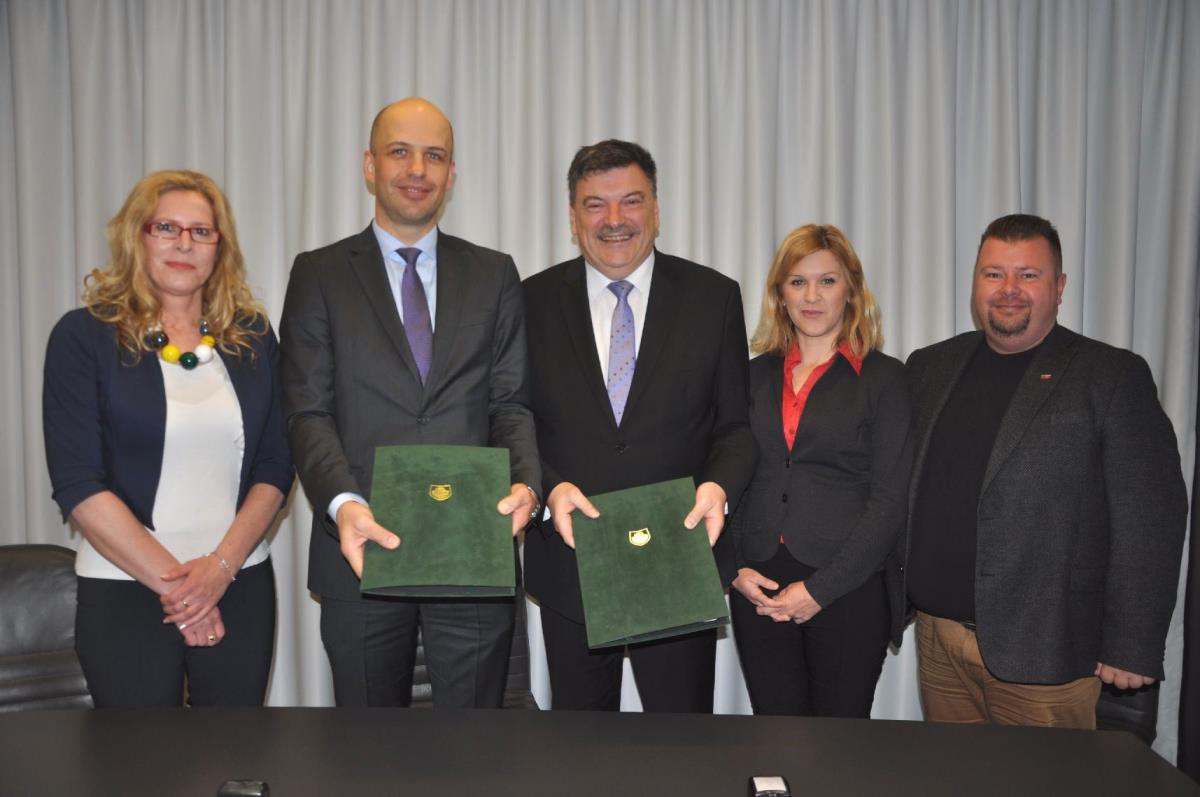 Župan dr. Peter Verlič in predsednik uprave CGP Martin Gosenca podpisala pogodbo za širitev Osnovne šole Louisa Adamiča Grosuplje