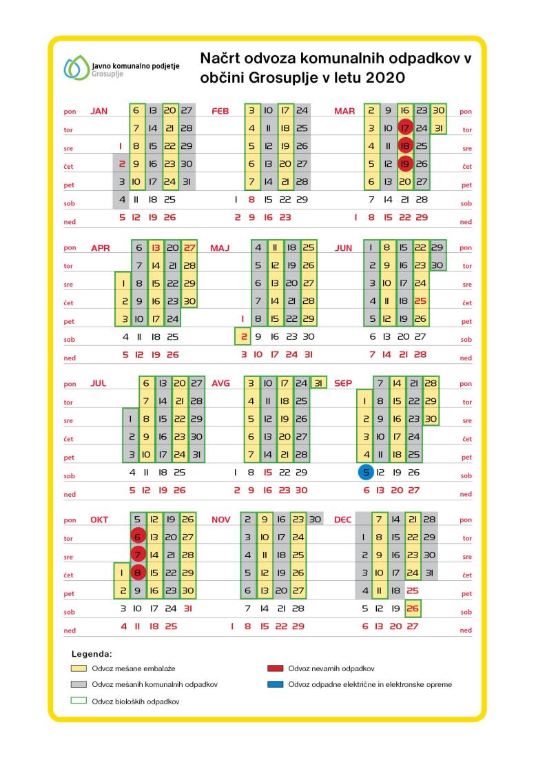 Načrt odvoza komunalnih odpadkov za leto 2020 v Občini Grosuplje