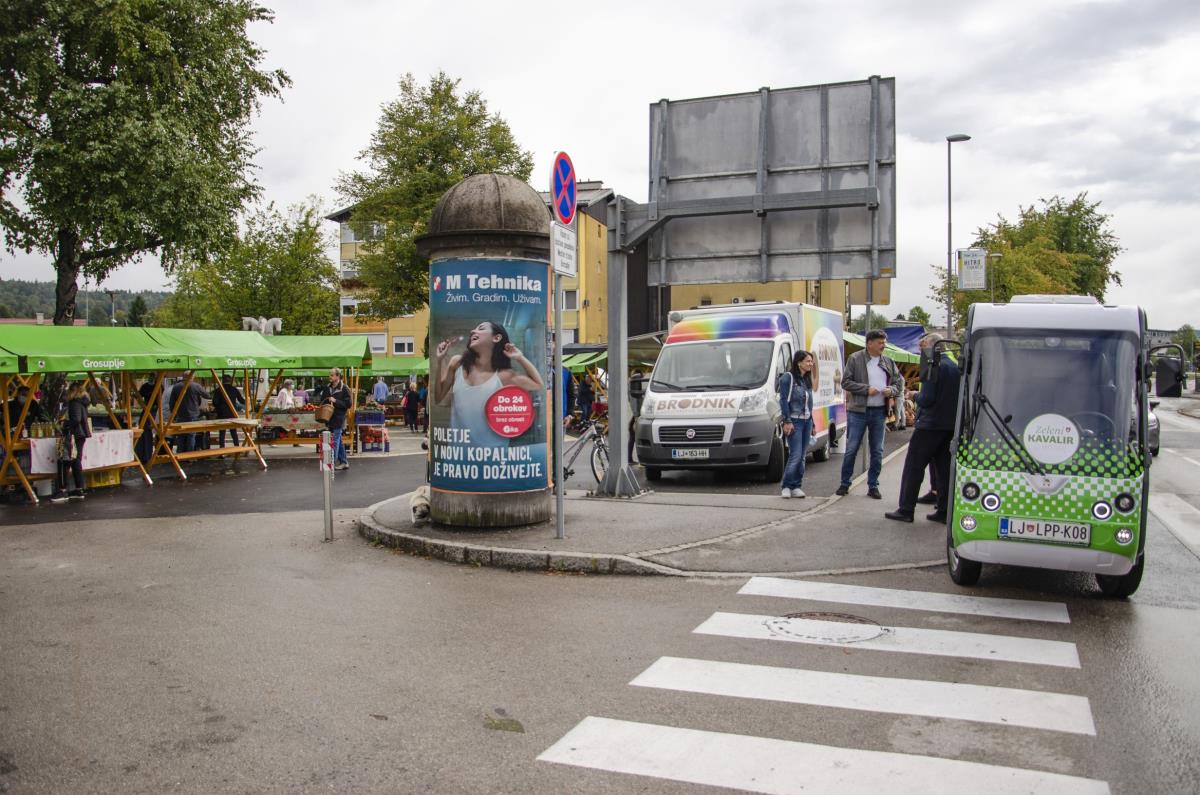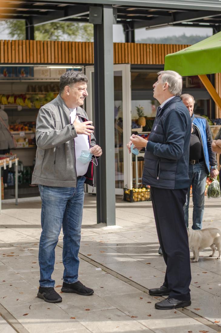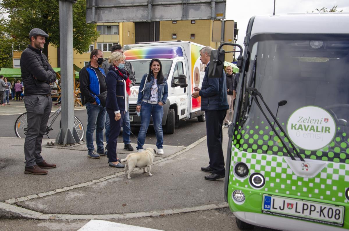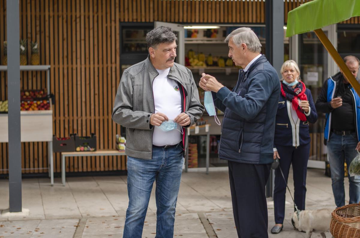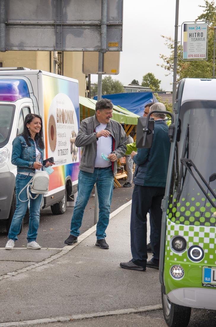 Tudi župan dr. Peter Verlič za tokratni obisk tržnice izkoristil priložnost in se pripeljal s kavalirjem