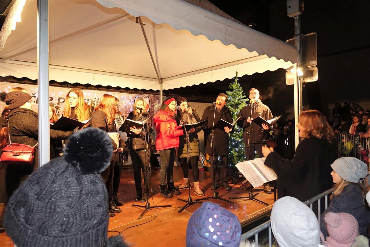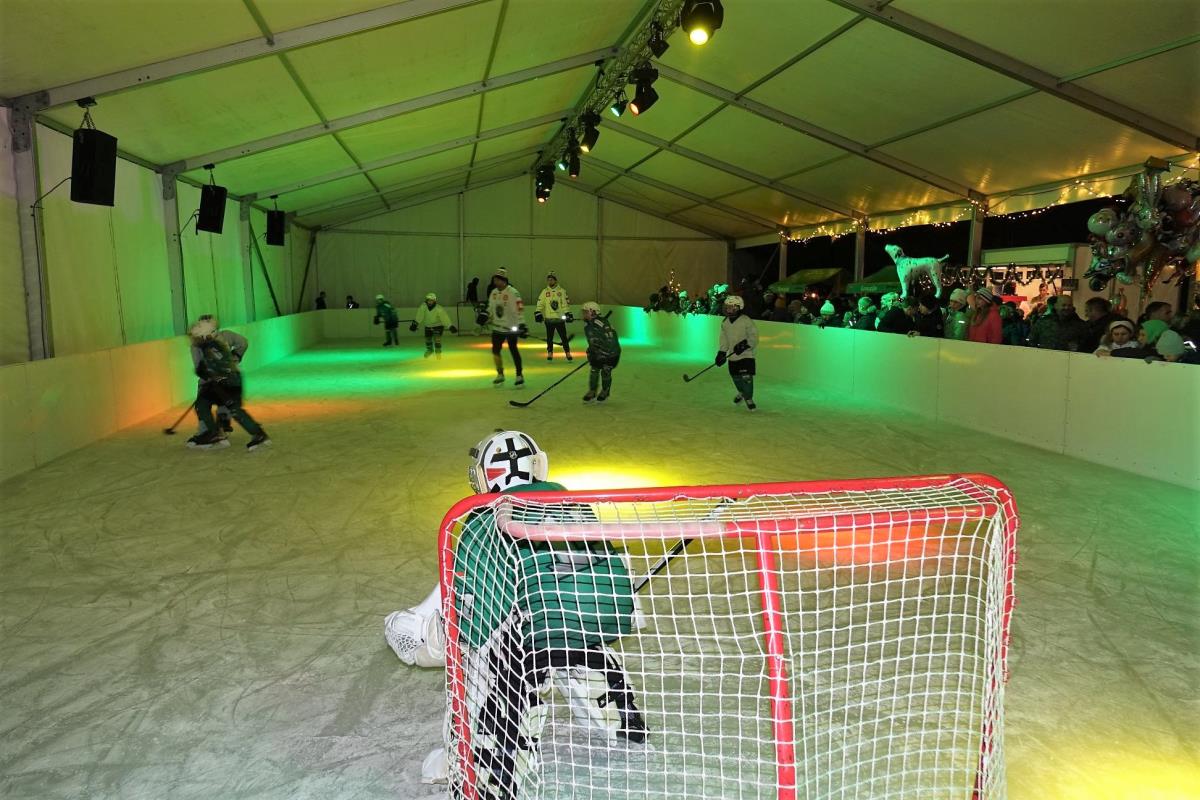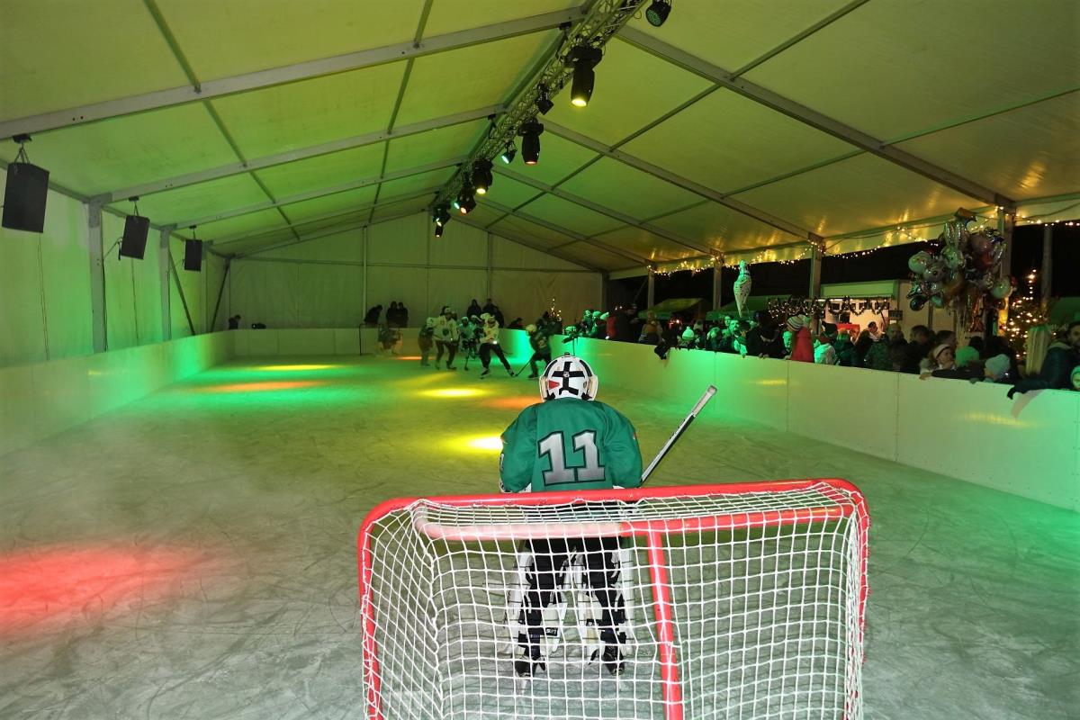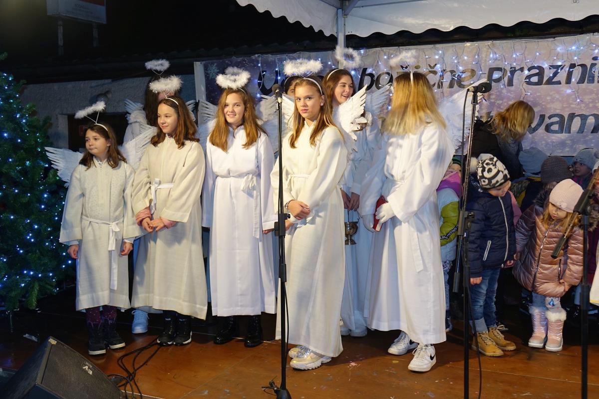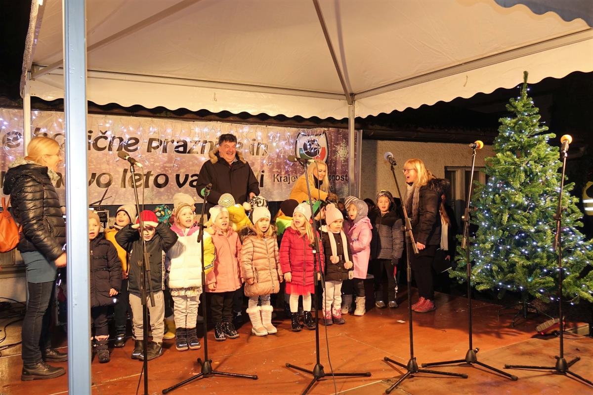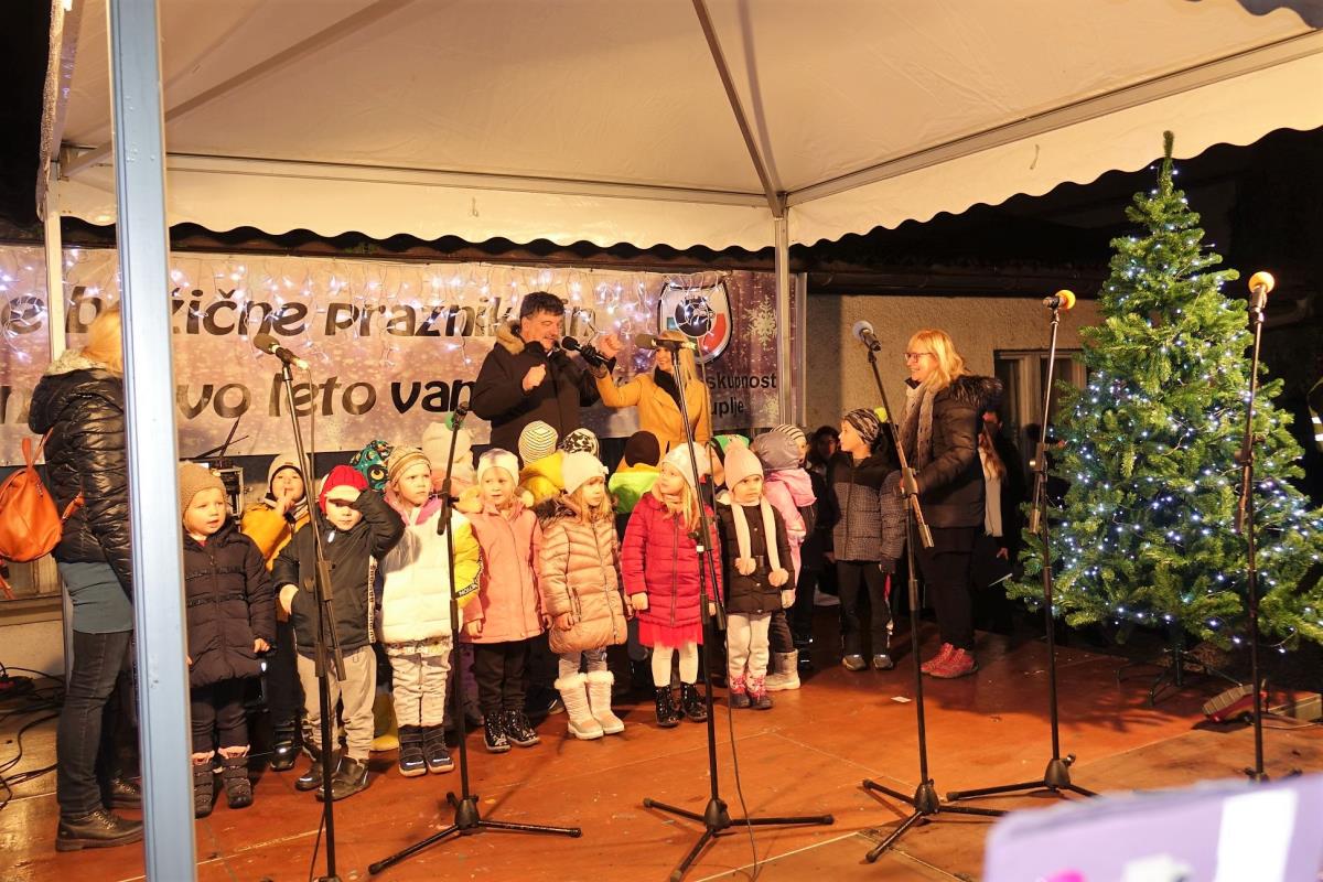 Prazničen program so z božično-novoletno pesmijo obarvali Art Voicess, s prikupnimi nastopi so se nam predstavili naši najmlajši iz vrtca Rožle, za prav posebne nastope na drsališču so poskrbele umetnostne drsalke Kaja, Nea, Pia in Lana iz drsalnih klubov Labod Bled in Jesenice, mladi hokejisti iz Hokejskega kluba Olimpija pa so nam na ledu predstavili, kako zgleda njihov trening.