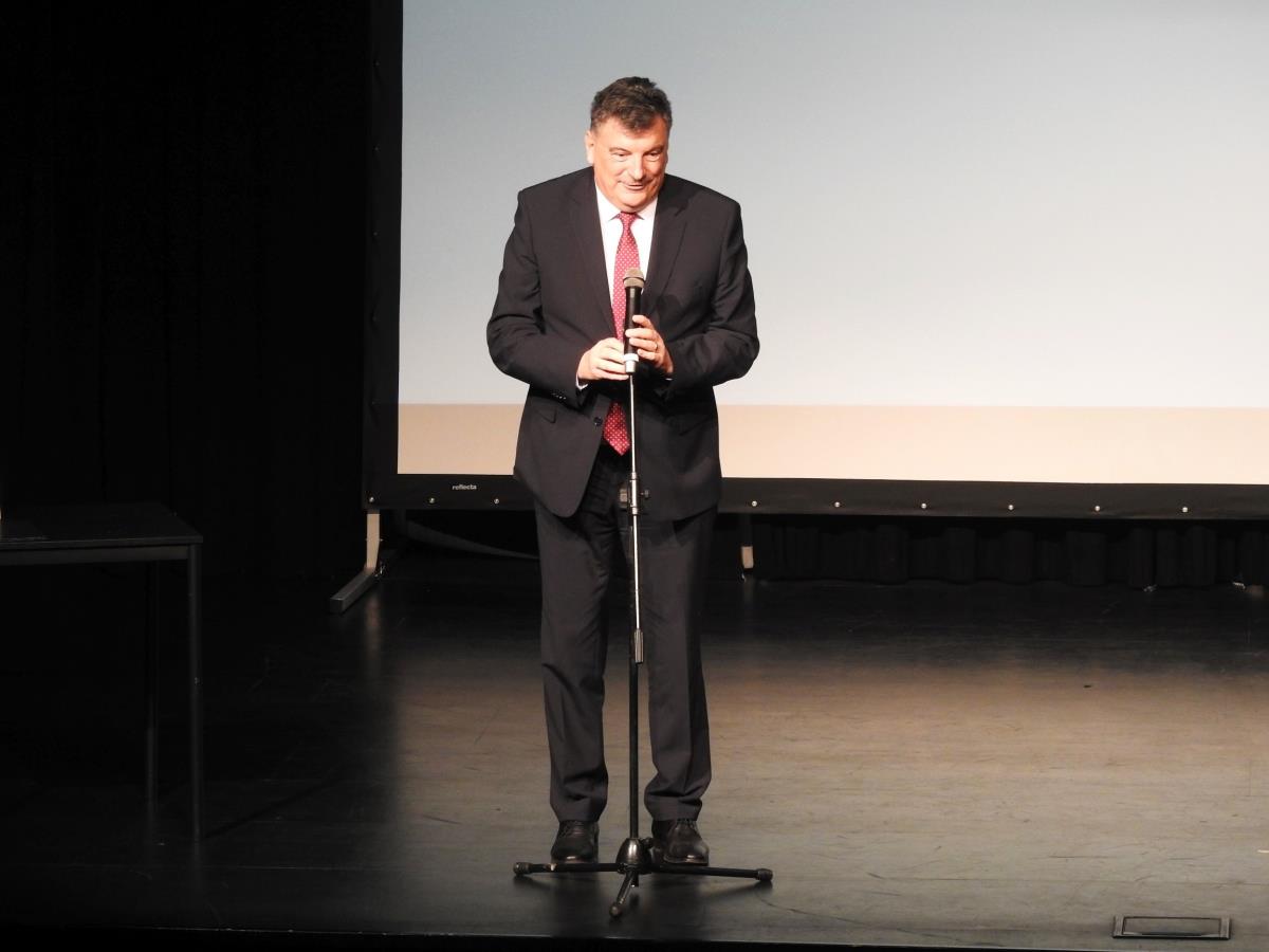 Župan dr. Peter Verlič je najprej čestital vsem kulturnikom, ki pestrijo življenje v občini in nam nudijo duševno hrano. Ob petdesetletnici se oziramo nazaj in se spominjamo preteklosti. Vendar je za bodočnost grosupeljske kulture pomembno, da so zagotovljena sredstva za gradnjo novega kulturnega doma ob parkirni hiši, z glasbeno šolo in več dvoranami, največja bo imela več kot 500 sedežev. Več pozornosti pa bomo morali nakloniti tudi znanim ljudem, ki so vezani na našo občino. Premalo je znano, da je tu dve leti na Kopanju preživel France Prešeren, tudi Louisu Adamiču, po katerem se imenujeta OŠ in glavna ulica v mestu, bomo morali posvetiti več pozornosti. Vsem je zaželel prijeten adventni čas, lepo praznovanje decembrskih praznikov in vse dobro v novem letu.