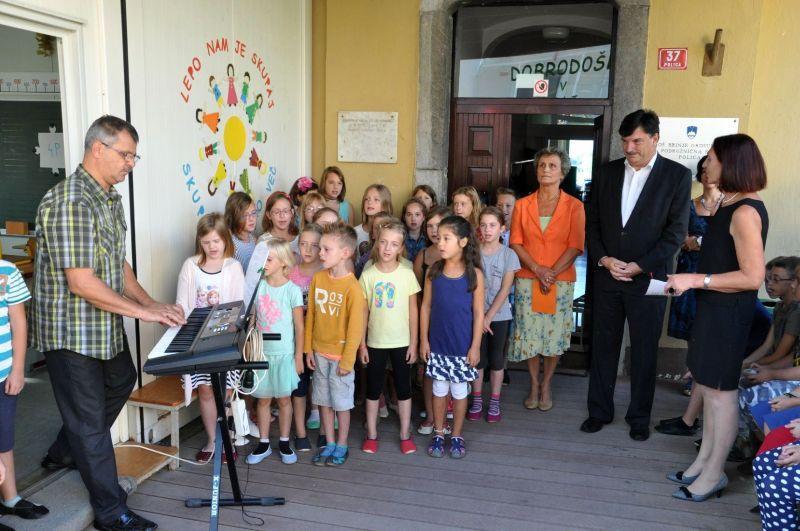 Nasmejane učiteljice, ponosne starše, predvsem pa prvošolke in prvošolce je ta dan lepo pozdravil tudi župan dr. Peter Verlič. »Niste več Zvončki, Trobentice, Medvedki, Zajčki,… ampak pravi šolarji. Naučili se boste brati, pisati, računati. Pa tudi risali boste, se naučili kakšno pesmico, čas bo tudi za telovadbo,« je dejal. Prvošolke in prvošolčke je tudi vprašal, ali je ta dan kdo jokal, takšna je bila namreč njegova izkušnja. A izkazalo se je, da prav nihče. S tistimi na Polici pa je delil še posebno lepo sporočilo: »Drugo šolsko leto boste vsi učenci te šole vstopili v novo šolo, v nove prostore. Letos pa vas prosim še za malo potrpljenja, pa skupaj glejmo, kako bo rasla nova šola.«