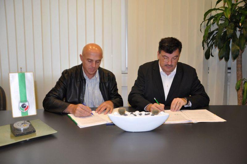 Župan dr. Peter Verlič in direktor podjetja Komunalne gradnje Viktor Dolinšek sta v petek, 26. septembra 2014, podpisala pogodbo za rekonstrukcijo lokalne ceste Veliko Mlačevo–Žalna.