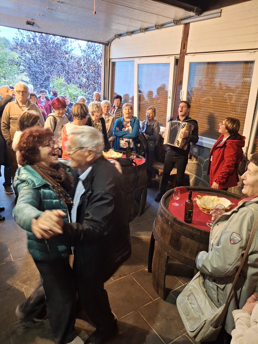 Imeli smo še izlet v Belo krajino: V Semiču smo si ogledali center mesta, muzej in cerkev. Ostalo se je dogajalo v Radovici. V Šoli za brihtne glave nas je skoraj eno uro zabavala navihana Belokranjka Ankica, na kmečkem turizmu Bajuk pa smo imeli kosilo, ob super spremljavi muzikanta Andreja pa tudi krst vina in zabavo v vinski kleti. Nasploh so Belokranjci zelo gostoljubni. Še bomo šli tja.