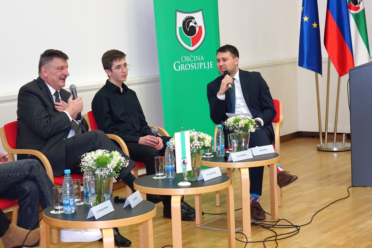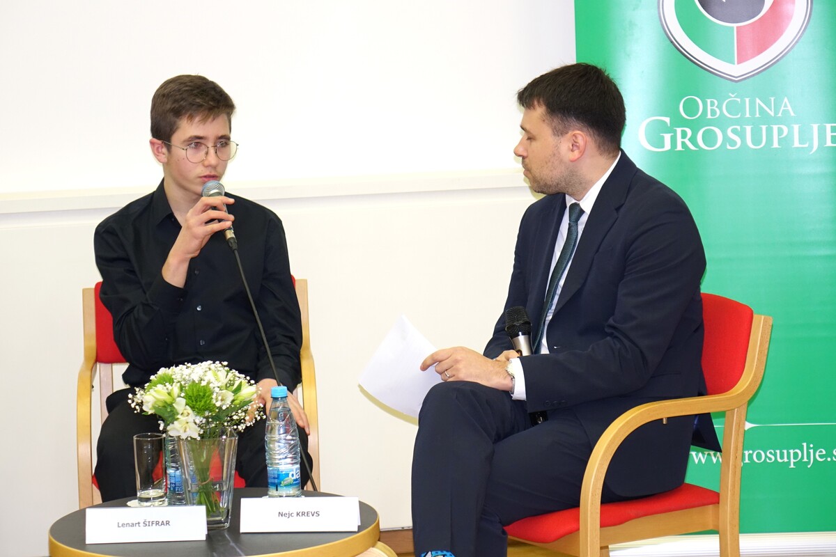 Gostujoči na okrogli mizi Lenart Šifrar pa je dogodek popestril tudi z glasbo, skupaj s sestro Pavlino, ki pa je prav tako prejemnica nagrade Občine Grosuplje mladim za izjemne dosežke.
