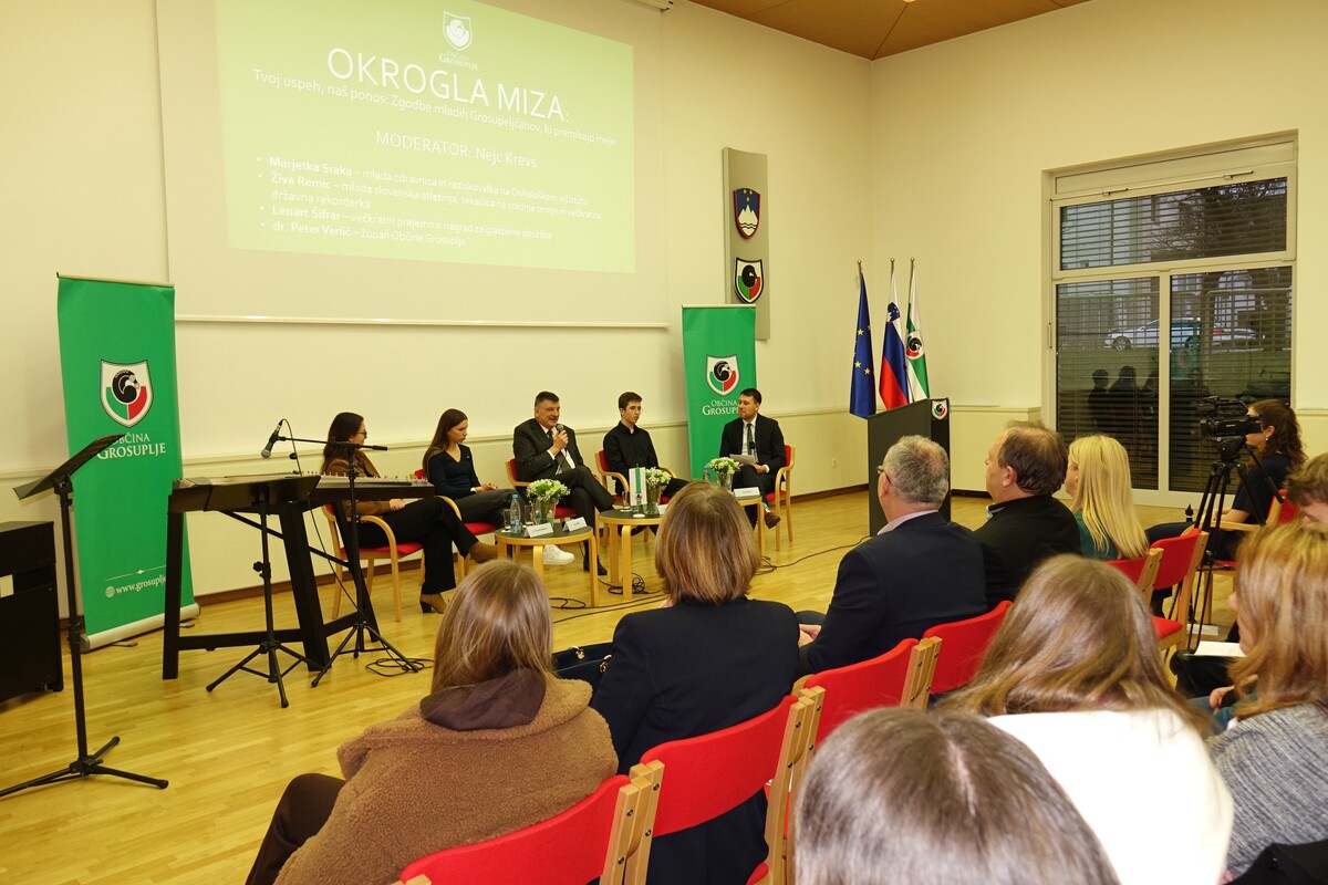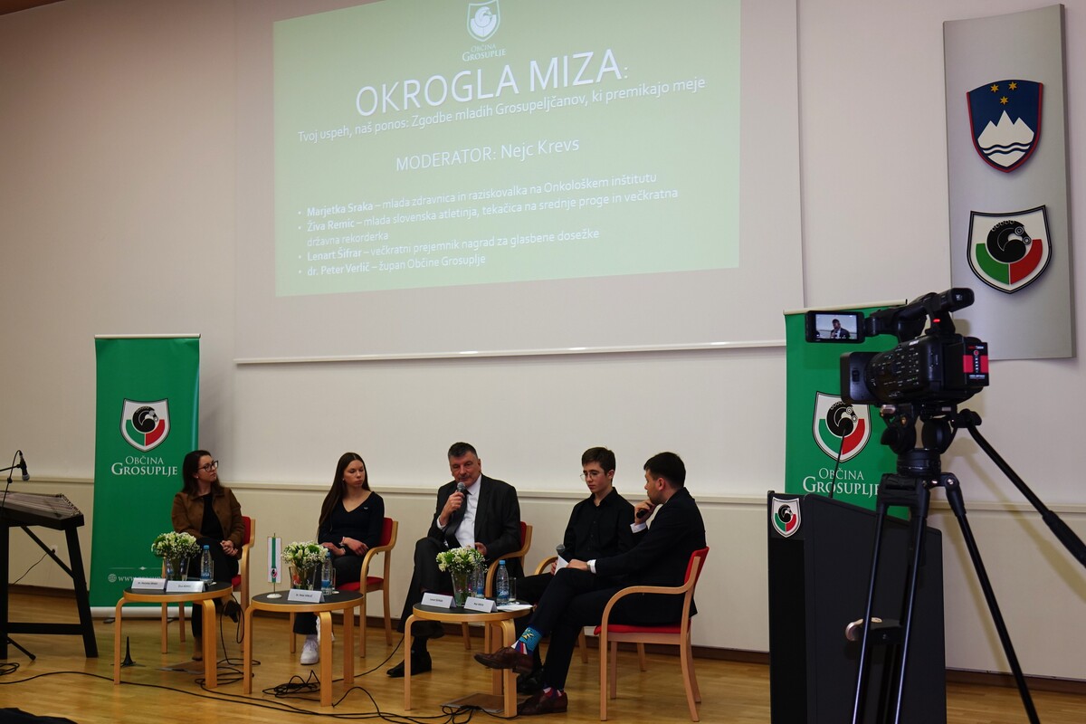 Dogodek smo letos nekoliko nadgradili, mu dali še večjo težo in pokazali, da imajo mladi pomembno mesto v naši skupnosti. Namesto klasičnega protokola smo tako v ospredje postavili zgodbe mladih Grosupeljčanov, ki na različnih področjih že danes dosegajo izjemne rezultate. Osrednji del dogodka je zato bila okrogla miza, z naslovom: »Tvoj uspeh, naš ponos: zgodbe mladih Grosupeljčanov, ki premikajo meje.«